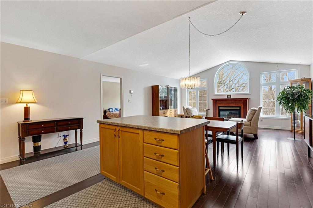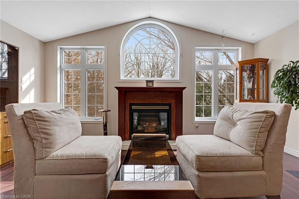 Welcome to 25 Bankside Drive, Unit 2 - a rare walkout bungalow backing onto serene greenspace in the sought-after Bungalows of Bankside. This executive-style condo offers effortless main-floor living with beautiful views and an open, airy layout. The spacious primary bedroom features a recently updated ensuite and peaceful views of the greenbelt, while a second main-floor bedroom is ideally located beside a full 4-piece bath. The bright open-concept living and dining area showcases vaulted ceilings, expansive windows with treed views, and a cozy fireplace. Main-floor laundry and convenient inside entry from the garage complete this level. The fully finished walkout lower level provides exceptional additional living space, including a large rec room ideal for entertaining, a third bedroom, and a 3-piece bath - perfect for guests or multi-generational living. Step outside to the private deck and enjoy direct access to the greenspace beyond. Move-in ready and ideally located close to shopping, walking trails, and quick highway access, this home offers low-maintenance living in a highly desirable community.