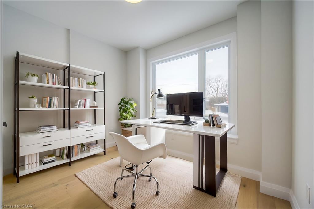 DISCOVER BLAIR WOODS: YOUR PRIVATE ENCLAVE IN WEST GALT! Blair Woods is a boutique collection of ten bungalow + loft townhomes, thoughtfully nestled in a mature and peaceful West Galt neighbourhood. This newly constructed Maple interior model offers an impressive 2,000 sq. ft. with an unfinished basement ready for your personal touch. Boasting 9-foot main floor ceilings, modern architectural design, and luxurious finishes, these homes are as stunning as they are functional. This unit features a main-floor primary suite with an ensuite bathroom, offering both convenience and privacy. Embrace the flexibility of the main floor front room, perfect as a cozy guest bedroom or a dedicated home office. Design highlights include soaring vaulted ceilings and a spacious upper family room, creating an inviting and airy atmosphere. The upper level also offers 3 additional bedrooms - offering a total of 4. Immerse yourself in the natural beauty surrounding Blair Woods. Spend the day cycling along the nearby Grand River trails, or take a leisurely stroll to the area's charming shops, cafés, Gaslight District, and the iconic Historic Langdon Hall. With serene views and lush greenery, this community offers a tranquil retreat from the everyday. Conveniently located just 6 minutes from the highway. Your dream home and lifestyle await—Blair Woods is ready to welcome you! Photos are of unit 1 end model. Photos are virtually staged.