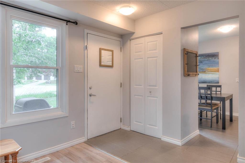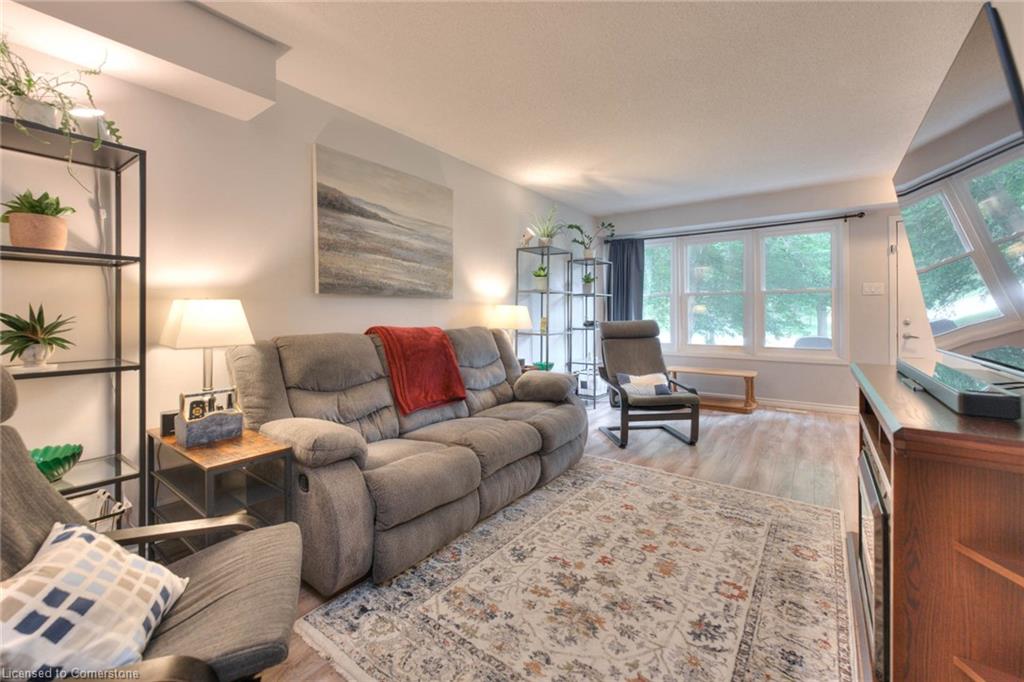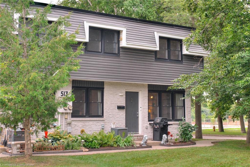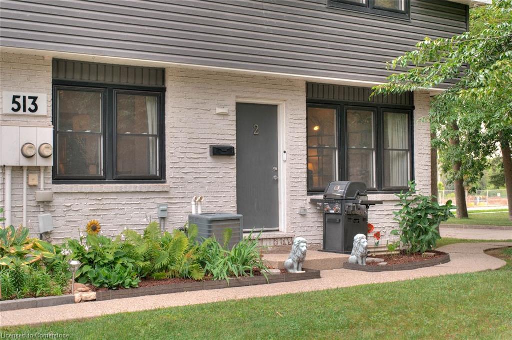 Welcome to 2-513 Quiet Place — a charming, beautifully maintained townhome tucked into a peaceful enclave surrounded by mature trees in Waterloo’s desirable Lakeshore South neighbourhood. This charming home impresses with its stylish two-tone exterior, black-trimmed windows, and cozy front garden. Inside, a bright foyer with updated flooring opens into a spacious living room, where warm tones and an oversized front window create a welcoming atmosphere. The open-concept layout is perfect for both entertaining and everyday living. The updated kitchen features modern cabinetry, tile backsplash, stainless steel appliances, and generous prep space, with a sunny dining area overlooking the front garden. Upstairs, you’ll find three spacious bedrooms and a beautifully renovated bathroom with sleek finishes, a modern vanity, and a tiled glass-enclosed shower. The primary bedroom boasts double windows and a large closet, while the other bedrooms offer great flexibility for family, guests, or a home office. The finished basement offers a private side entrance, a large rec room, full 4-piece bathroom with a deep soaker tub, and ample storage — perfect for extended family, guests, or future in-law potential. Recent updates include a new roof (2021), furnace/AC (2015), HWT (2015), windows (2015), and siding (2015). Located just steps from the Albert McCormick Community Centre, shopping, cafés, two public schools, and minutes walking distance to the LRT station and nearby parks—offering the perfect blend of convenience and community charm. Condo fees include water, snow removal, landscaping, garbage removal, parking, and building maintenance for stress-free living.