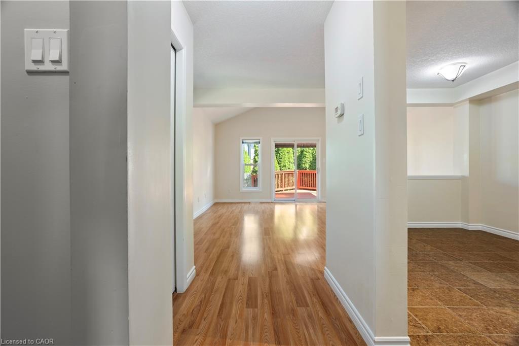 Welcome to 2 Donnenwerth Drive in Kitchener! This beautifully updated 3-bedroom, 2.5-bath semi-detached home sits on a desirable corner lot surrounded by mature cedar, apple, and pear trees, offering exceptional privacy. The home has been freshly painted throughout and features a bright open-concept kitchen, living, and dining area—perfect for modern living and entertaining. Step outside to enjoy a spacious deck and a fully fenced yard, ideal for family gatherings. Upstairs, the large primary bedroom offers a walk-in closet and cheater ensuite, complemented by two additional bedrooms that provide plenty of space for family, guests, or a home office. The finished basement adds versatile living space, while a single-car garage with private driveway offers convenience. Recent updates include a brand new furnace (2025) for peace of mind. With its thoughtful updates, private outdoor retreat, and family-friendly location close to schools, parks, and amenities, this home is truly move-in ready! R4 zoning and basement allows for potential in-law suite set up!