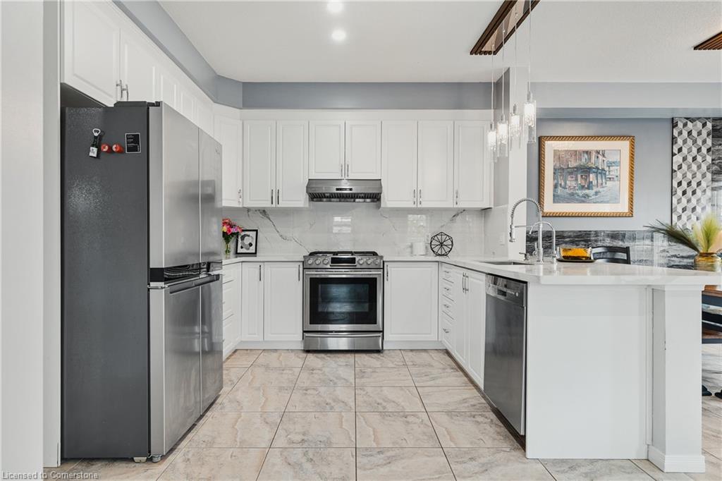 Welcome to 2 Wildflower Street, Kitchener, a beautifully upgraded home in the prestigious and family-friendly Doon South neighbourhood. Nestled on a quiet corner lot, this well-maintained property offers 2473 sqft of living space plus a legal 2-bedroom basement apartment with a separate entrance, perfect for families or rental income. The main floor features a bright, open-concept layout with 9’ ceilings, pot lights, and a carpet-free design. Enjoy a stylish living room with a TV feature wall and fireplace (2021), and a modern kitchen with quartz countertops, stainless steel appliances, pendant lighting, and a pantry room. A powder room and central vacuum system add to the convenience. Upstairs offers 4 spacious bedrooms, including a primary suite with a cozy reading or office nook. Two recently updated quartz-finished bathrooms and an upper-level laundry room complete the space. The newly finished legal basement includes 2 bedrooms, a sleek kitchen with quartz counters and soft-close cabinets, brand-new appliances, a TV wall with fireplace, and its own private entrance which makes it ideal for in-laws or tenants. Outside, enjoy a fully fenced backyard with two concrete patios, vegetable beds, and a 2-car garage plus an extended 3-car driveway. There are no rental items, everything is owned. Additional features include a water purifier, water softener, and original AC and furnace in great shape. Located just 5 minutes to Hwy 401 and near Conestoga College, transit, shopping, and schools, this move-in-ready home offers comfort, space, and versatility in a prime Kitchener location.