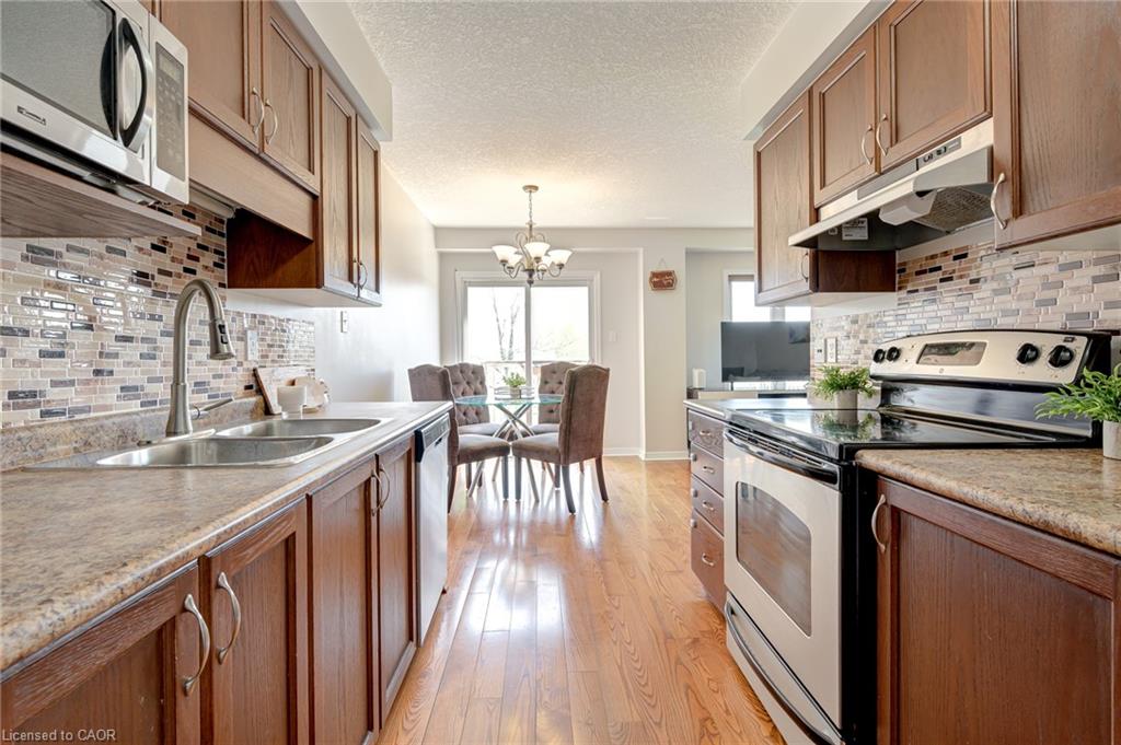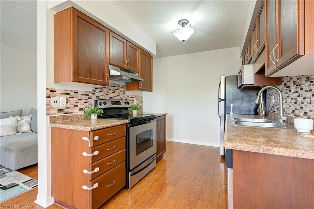 Welcome to 20-20 David Bergey Drive, Kitchener – a meticulously maintained end-unit townhouse situated in the highly sought-after Laurentian Hills neighborhood. Top Reasons to Call C20-20 David Bergey Drive Home 1. Prime Location in Laurentian Hills: Nestled in one of Kitchener’s most desirable neighborhoods, this end-unit townhouse backs onto a ravine lot offering privacy, peace, and direct access to nature trails and mature trees. 2. Rare 3-Car Parking: Enjoy the convenience of a private driveway, 1-car garage, and a designated parking spot—a rare find for townhouse living. 3. Carpet-Free Main Level: The beautifully maintained main floor features engineered hardwood flooring throughout, offering a modern and low-maintenance living space. 4. Bright, Open-Concept Layout: The spacious eat-in kitchen is equipped with modern appliances, a chic backsplash, and ample cabinetry, flowing seamlessly into a sunlit dining area and a warm, inviting living room filled with natural light. 5. Generous Bedroom Sizes: Upstairs offers three large bedrooms, including a primary suite with his & her closets, and a stylish 4-piece bathroom. 6. Finished Walkout Basement with Potential: The fully finished lower level includes a large rec room, cold room, utility area, built-in laundry cabinetry, and a roughed-in bathroom ready for your customization. 7. Private Backyard Oasis: Step out to your tranquil retreat with lush greenspace, a pond view, and no rear neighbors—perfect for relaxing or entertaining. 8. Fully Updated Inside & Out: This home is move-in ready with modern updates throughout, blending stylish interiors with the calm of a natural setting. 9. Urban Convenience Meets Natural Living: Enjoy the best of both worlds—just minutes from schools, Sunrise Shopping Centre, and major highways, while still surrounded by peaceful greenery. Don’t miss this incredible opportunity—schedule your showing today!