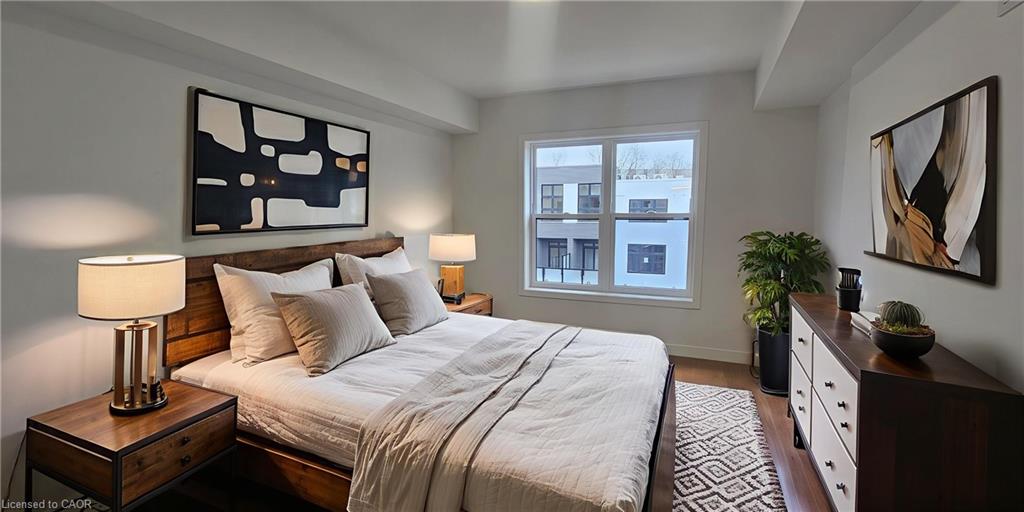 Viva—The Brightest Addition to Downtown Kitchener. Nestled on Mill Street near downtown Kitchener, Viva offers a refined balance of urban convenience and natural surroundings. Steps from the Iron Horse Trail and Victoria Park, residents enjoy immediate access to scenic paths, parks, and the iON LRT. Within this professionally landscaped community, the modern Agave stacked townhome features 1,116 sq. ft., 2 bedrooms, and 1.5 bathrooms. Its bright, open-concept layout includes a stylish kitchen with quartz countertops, a breakfast bar, stainless steel appliances, and quality flooring throughout. Life at Viva invites an effortless rhythm—morning coffees Uptown, errands downtown, and quiet evenings in a mature, peaceful neighbourhood. It is a place where contemporary living and natural calm meet seamlessly. Heat, hydro, water, and hot water heater are to be paid by the tenant(s). Good credit is required, and a full application must be submitted. AVAILABLE immediately! Photos are virtually staged.