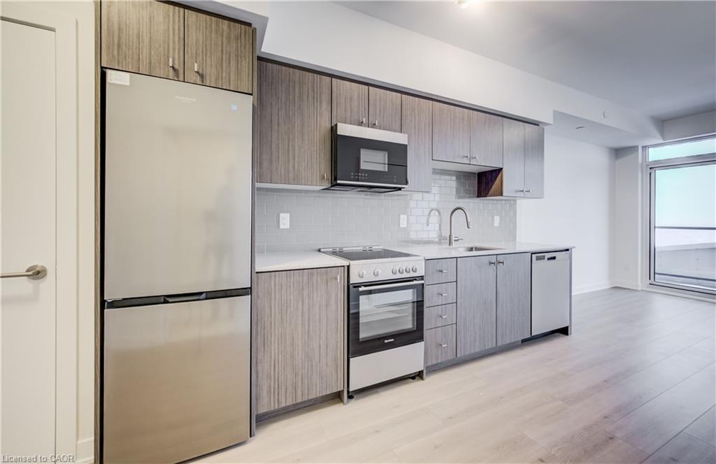 Welcome to DUO Station Park. This exceptional 1-bedroom, 1-bathroom, condo offers carefree living in one of Kitchener’s most sought-after, evolving communities. Enjoy north-west exposure from your private balcony, where breathtaking sunsets become part of your daily routine. The bright, open-concept layout features a modern kitchen with new appliances, in-suite laundry, and a convenient location close to the elevator, along with one parking space. As DUO Station Park continues to grow, so do its impressive amenities—designed for comfort, accessibility, and lifestyle. Entertain in the party room, enjoy bowling lanes, relax in the swim spa with lift access, or take advantage of the fitness centre and Peloton room. Outdoor features include a children’s play area and a half running track, offering something for everyone. Perfectly located in Midtown, you’re just minutes from Uptown Waterloo and Downtown Kitchener, across from the Google building with transit LRT, dining, tech hubs, Universities and everyday conveniences right at your doorstep.