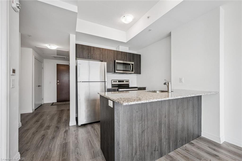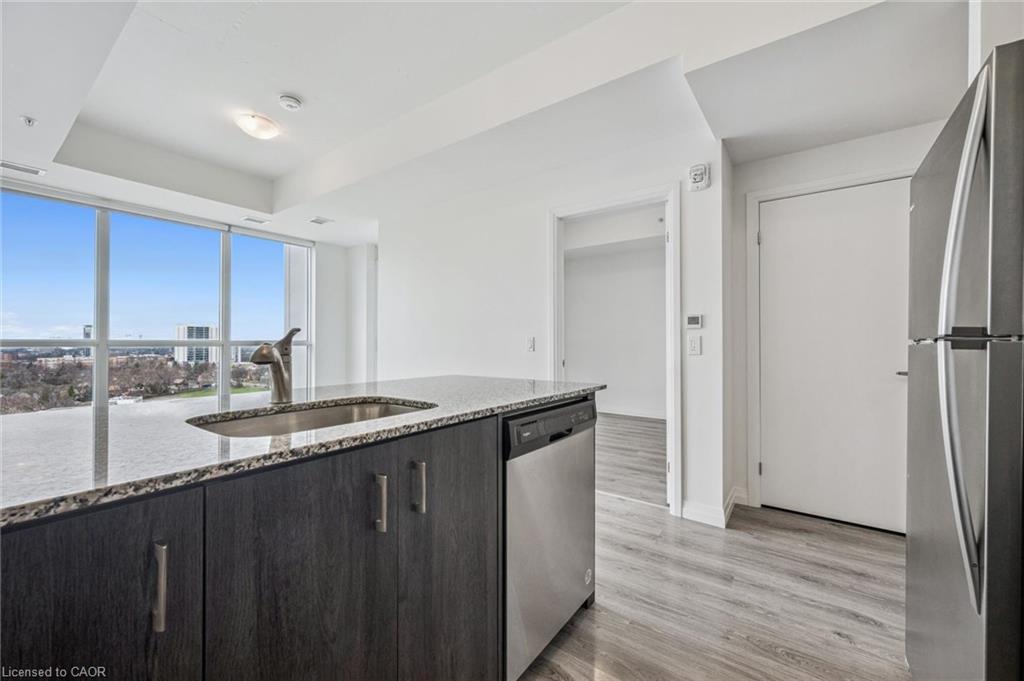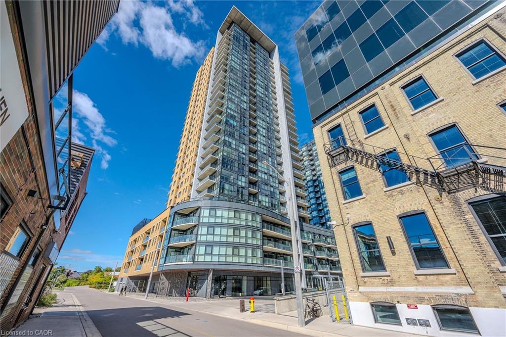 Experience elevated urban living in this stunning 1-bedroom, 1-bathroom condo located on the 20th floor of the sought-after Garment Street Lofts. Perfectly positioned directly in the Innovation District, you are steps away from major employers with KPMG on your doorstep, Deloitte across the street, and Google just down the road. This modern suite offers a bright, open-concept layout featuring floor-to-ceiling windows that flood the space with natural light and a contemporary kitchen upgraded with stainless steel appliances, stone countertops, and tile backsplash. The living area transitions seamlessly to a private balcony where you can enjoy breathtaking west-facing sunset views. The bedroom serves as a true retreat with a spacious walk-in closet for all your storage needs. With a Walk Score of 87, you are moments away from the ION light rail, local shopping and restaurants, and Victoria Park. Designed for ultimate convenience, the unit includes in-suite laundry, central air conditioning, and a storage locker. Residents gain access to an impressive suite of building amenities, including a state-of-the-art exercise room, a refreshing outdoor pool, a rooftop deck with a garden, and community BBQs. The building also offers concierge services. This unit is move-in ready and available immediately, offering a sophisticated lifestyle in Kitchener’s most exciting neighbourhood with one underground parking space included.