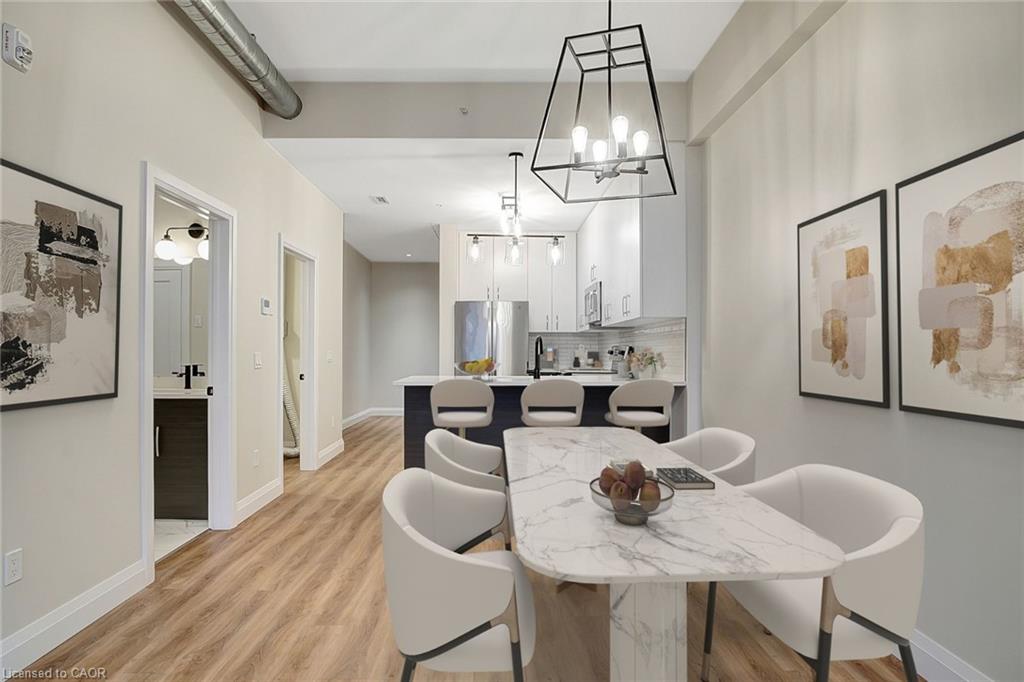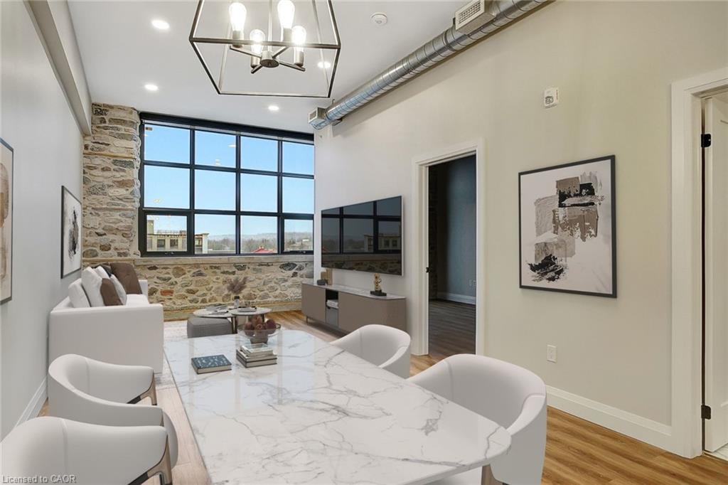 Welcome to The Boardwalk Tower, where historic character blends seamlessly with today’s modern conveniences. This one-bedroom, one-bath residence offers soaring ceilings and oversized windows that flood the space with natural light, creating an airy, open feel. Inside, the freshly updated interior is designed for both style and functionality. The kitchen features full-size stainless steel appliances, and a sleek open layout that flows into the dining and living areas. Practical touches make city living a breeze, with in-suite laundry, generous closet space, and thoughtful storage throughout. Set in the heart of downtown Cambridge, this apartment puts you within walking distance of cafés, restaurants, shops, the Gaslight District, and everything you could want. With its combination of modern updates, convenience, and location, this residence offers the perfect backdrop for a vibrant lifestyle.