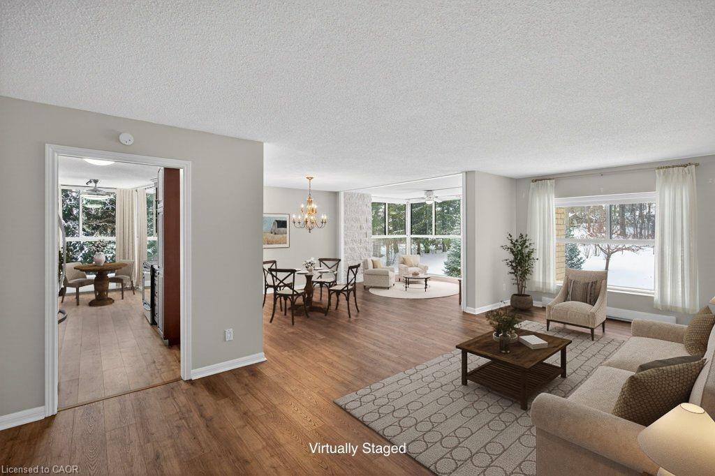 delivers peace, privacy, and timeless appeal. This beautifully updated and sprawling one-storey condominium offers approximately 1454 sq. ft. of elegant living space, featuring 2 bedrooms and
