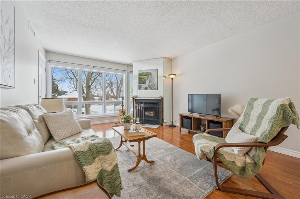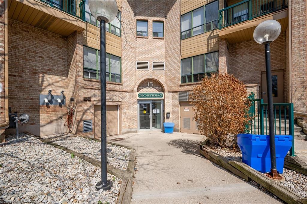 Welcome to your next chapter in the heart of Chicopee! This BEAUTIFULLY MAINTAINED 2-bedroom, 2-bath condo offers 841 sq ft of stylish, CARPET-FREE living in one of Kitchener’s most desirable locations. Tucked quietly at the back of the building, your PRIVATE BALCONY overlooks mature trees, the perfect peaceful escape after a long day. Inside, the bright open-concept living & dining area invites you to relax by the cozy wood-burning fireplace or step out to the updated balcony & unwind. The kitchen shines with STAINLESS STEEL APPLIANCES, including a brand NEW DISHWASHER, plus a bonus PANTRY for extra storage, because you can never have too much storage! The spacious primary bedroom features DOUBLE CLOSETS & its own private ENSUITE, while the second bedroom & full bath offer flexibility for guests, a home office, or growing families. Even better? The entire unit has been FRESHLY PAINTED and major 2025 exterior upgrades include NEW WINDOWS, BALCONY, BALCONY DOOR, SCREEN DOOR, & NEW SIDING, with the remaining exterior improvements scheduled for completion in April 2026. Laundry on every floor makes life easy, & you’ll love the convenient access to your EXCLUSIVE PARKING SPOT. Take the elevator down the hall or simply step outside the unit & head one flight down to ground level. Enjoy secure building entry & a Party Room for entertaining friends & family. Location truly sets this home apart, just MINUTES FROM CHICOPEE for both winter & summer sports & activities, plus shopping, dining, & highway access. Whether you're a FIRST-TIME BUYER, DOWNSIZER OR INVESTOR, this is an opportunity you won’t want to miss. MOVE-IN READY. PEACEFULL SETTING. FANTASTIC LOCATION. Book your private showing today!