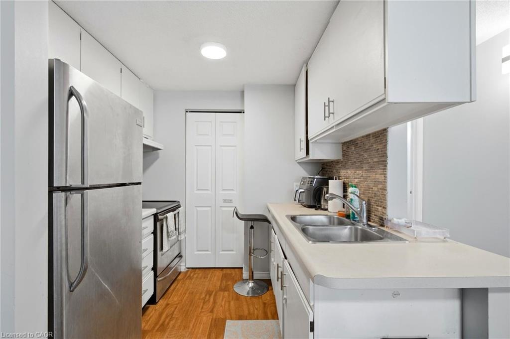 Welcome to Unit 205 at 30 Bridge Street West, a bright and well-maintained 2-bedroom condo in Kitchener’s desirable Lincoln Village neighbourhood. Offering 733 square feet of functional living space, this second-level unit features a spacious living and dining area, a practical kitchen layout, and the convenience of in-suite laundry. The primary bedroom provides generous proportions, while the second bedroom is perfect for guests, a home office, or additional living space. Enjoy outdoor relaxation on the private terrace, plus the added benefit of one assigned parking space and visitor parking for guests. Ideally located close to parks, schools, shopping, public transit, trails, and the Grand River, this home blends comfort and convenience in a well-established community. An excellent opportunity for those seeking low-maintenance living in a prime Kitchener location.