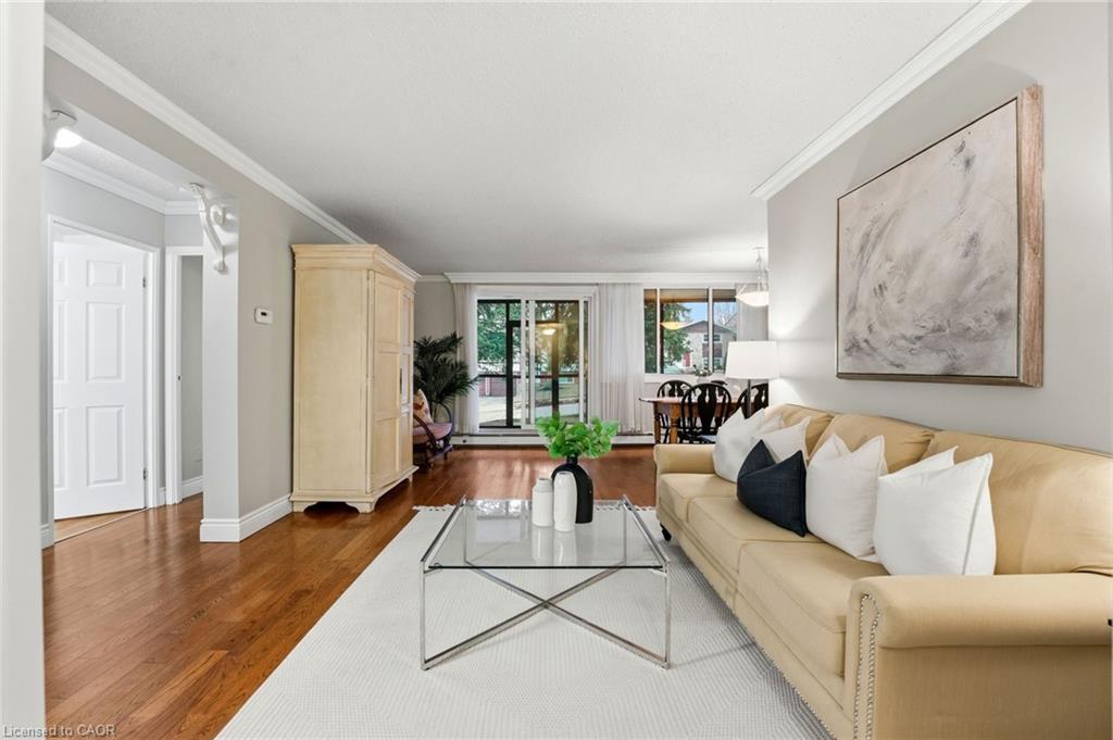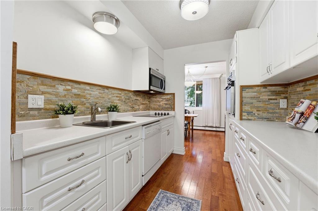 Welcome to this bright and well-maintained GROUND FLOOR 2-bedroom apartment offering comfortable living in a convenient location. The unit features a functional galley-style kitchen with crisp white cabinetry, ample counter space, and a stylish tile backsplash. Hardwood flooring flows through the living areas and bedrooms, creating a warm and inviting atmosphere. Both bedrooms are generously sized with large windows that allow for plenty of natural light. The enclosed porch provides additional living space — perfect for a cozy sitting area, home office, or sunroom to enjoy year-round. Residents will appreciate the secure building entrance and clean, welcoming lobby. This unit offers practical living with a thoughtful layout and plenty of storage. Ideally located close to amenities, transit, and green space, this apartment is perfect for first-time buyers, downsizers, or investors looking for a low-maintenance property.