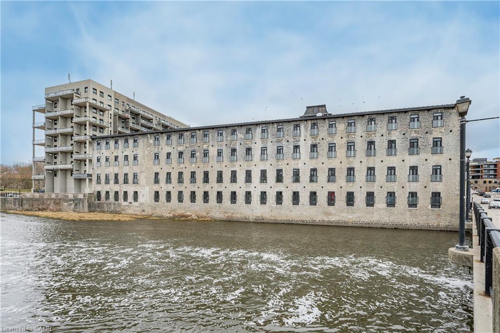Experience the perfect blend of industrial charm and modern comfort at Riverbank Lofts! This stunning one-bedroom, one-bathroom condo is set in a beautifully repurposed former American Standard factory, transformed into contemporary residences in 2020. Nestled alongside the scenic Speed River and just steps from downtown Hespeler, you’ll enjoy easy access to local shops, trails, and vibrant community amenities. Step inside to soaring 12-foot ceilings, expansive windows that flood the space with natural light, and striking exposed stone walls and reclaimed wood beams that add unique character throughout. The stylish kitchen features quartz countertops, stainless steel appliances, and a spacious island—perfect for entertaining or casual dining. Open the patio doors to your own private balcony with captivating views of downtown. The bedroom offers a generous walk-in closet, providing ample storage. Additional conveniences include in-suite laundry, one dedicated parking space, and access to premium building amenities: a fitness centre, bike storage room, dog washing station, and a private lounge for hosting guests. With quick access to Highway 401, shopping, and public transit, Riverbank Lofts offers an unparalleled lifestyle in a truly distinctive setting. Don’t miss your chance to own a piece of Hespeler’s history—book your private showing today!
