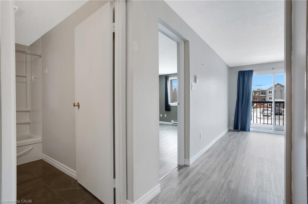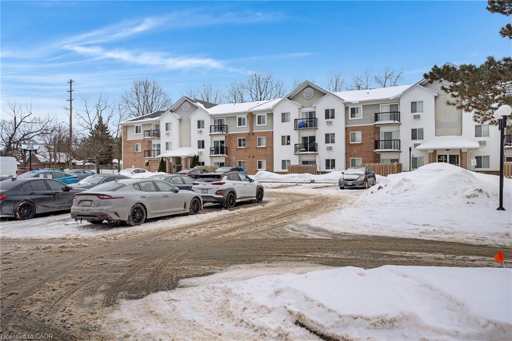 Modern 1-bedroom condo in desirable East Bridge, Waterloo - ideal for students, first-time buyers & investors. This well-maintained, move-in ready unit offers a bright open-concept layout, neutral décor & stylish updated flooring throughout. The kitchen has a double sink, ample cabinetry, built-in microwave (~5yrs), refrigerator (~2 yrs), stove (~5yrs) & plenty of prep space. The living & dining area has a wall A/C (A/C unit included) and a sliding door onto a small balcony. The spacious primary bedroom includes a floor-to-ceiling closet with an updated 4-piece cheater ensuite bathroom that has additional shelving for extra storage. The building offers secure controlled access, convenient app-operated laundry facilities & permits ductless in-suite washer/dryer units. The parking space is located close to the main entrance & the property sits directly on a bus route, making commuting simple. FreshCo and Rexall are also close by as well as scenic walking trails, Grey Silo Golf Course, RIM Park & the Grand River. Conestoga Mall, the Conestoga Expressway, & major shopping amenities are just minutes away. Wilfrid Laurier University is approximately a 6-minute drive or 20-minute bus ride & only a short bike ride from the property. Whether you're entering the market or adding to your investment portfolio, this condo offers affordability, location, & low-maintenance living in one of Waterloo's most convenient neighbourhoods.