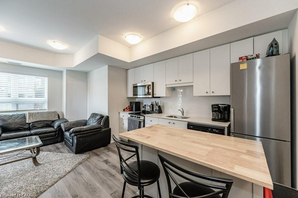 Welcome to the Hush Condominiums! This 1 bedroom, 1 bathroom open concept unit with balcony is perfect for a couple or an individual. This unit is carpet free, with modern finishes. The kitchen boasts stainless steel appliances, quartz counter tops and backsplash and plenty of cupboard space. This condominium has one underground parking space, storage locker, shared bbq, and party room. Located within minutes of shopping, dining, entertainment, walking trails and parks. Located a short distance from Highway 7/8 creating easy access to the downtown core and the 401.