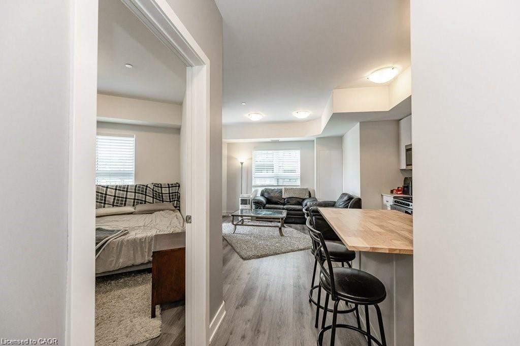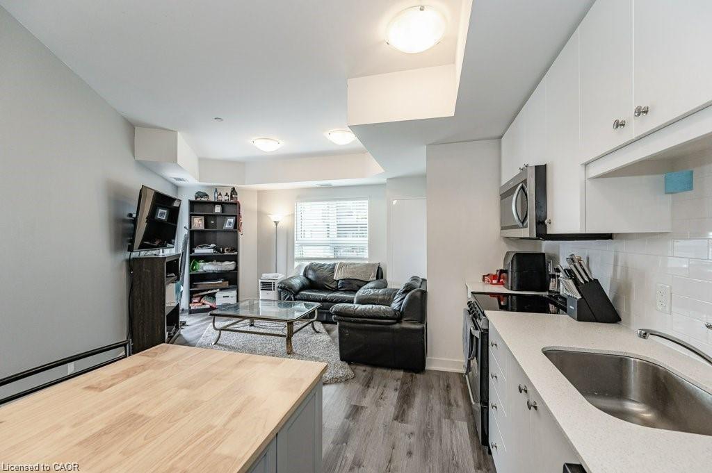 Welcome to the Hush Condominiums! This 1 bedroom, 1 bathroom open concept unit with balcony is perfect for a couple or an individual. This unit is carpet free, with modern finishes. The kitchen boasts stainless steel appliances, quartz counter tops and backsplash and plenty of cupboard space. This condominium has one underground parking space, storage locker, shared bbq, and party room. Located within minutes of shopping, dining, entertainment, walking trails and parks. Located a short distance from Highway 7/8 creating easy access to the downtown core and the 401.