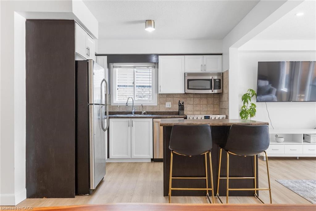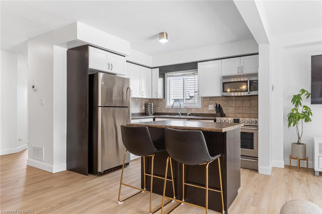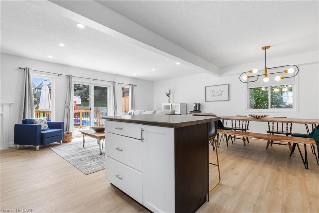 Perfect for first time buyers or young families! This 3+1 bedroom family home is nestled on a large lot and quiet court in Kitchener's west end. Bright open concept main floor featuring a kitchen with centre island, dining area and living room complete with a gas fireplace & walkout to a large deck/private backyard oasis. Enjoy the bonus upper level family room! Finished basement includes a 3 pc. bath, office/bedroom & recreation space. One of the things you will love most about this home is the spacious gated deck surrounding a beautiful pool that is ideal for summer fun! Plenty of space to entertain your family and friends and an additional grassy area for the kids & pets to play! Sunny south exposure. Pool Deck and liner replaced in 2024, Furnace replaced in 2024, brand new pool cleaner, luxury vinyl flooring on main floor June'25. Direct garage access. Steps to schools, transit, parks & trails. Close to shops, restaurants, St. Jacobs Market, KW Hospital, University of Waterloo, Westmount Golf & Country Club. Easy access to highway 8 & 401.