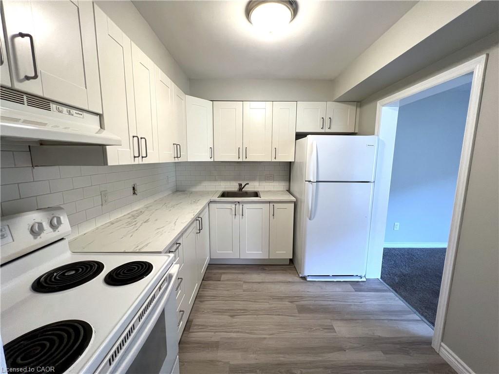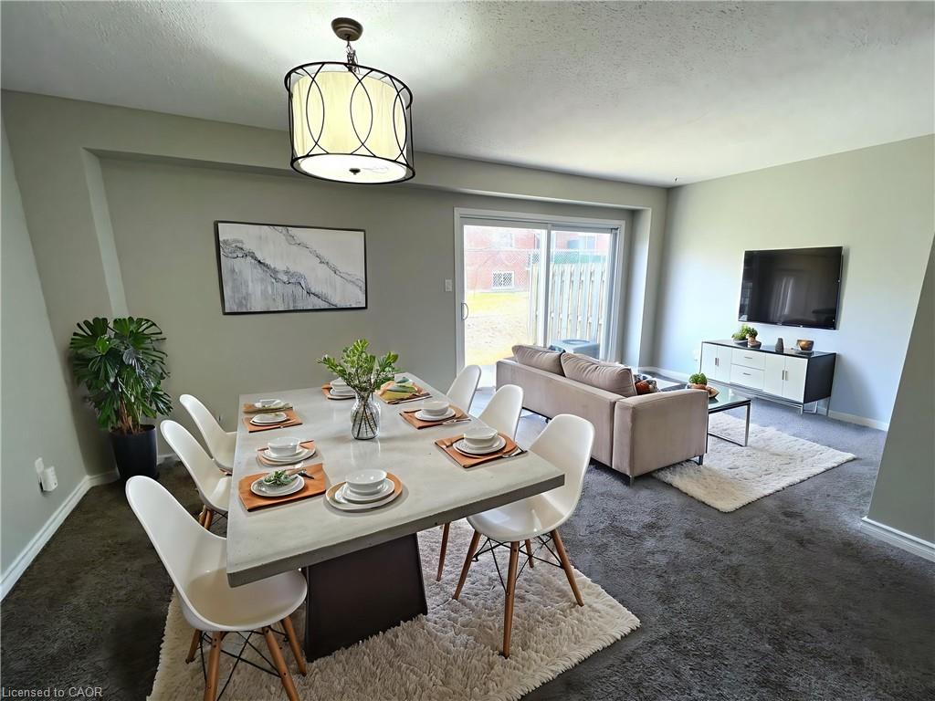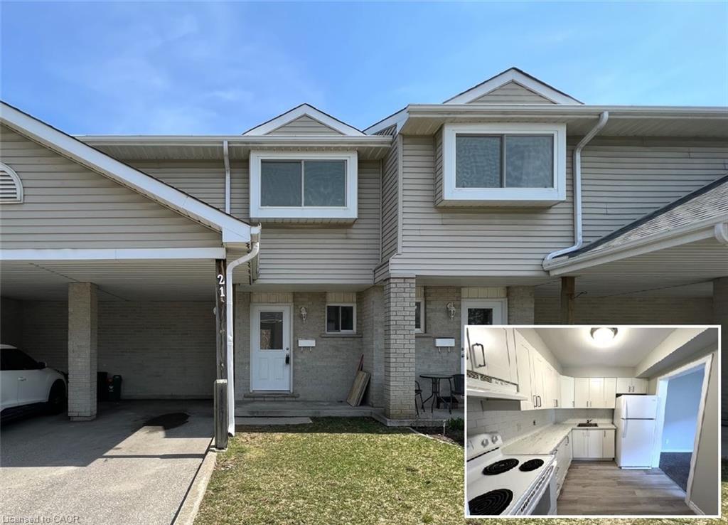 FAMILY-FRIENDLY NORTH GALT TOWNHOME! This well-maintained unit offers a bright white kitchen and an open-concept living and dining area with sliding doors that lead to a private rear patio—perfect for summer evenings. The main floor also includes a convenient powder room. Upstairs, you’ll find 3 carpeted bedrooms, including a spacious primary, and an updated 4-piece bathroom. The finished lower level boasts a large, carpet-free rec room—ideal for a playroom, home office, or additional living space. A single carport provides parking for one vehicle. Located just minutes from excellent schools, public transit, Cambridge Centre Mall, parks, and quick access to the 401. Tenants are responsible for heat, hydro, gas, tenant insurance, hot water heater rental, and water. Good credit is required, and a full rental application must be submitted. Available Immediately.