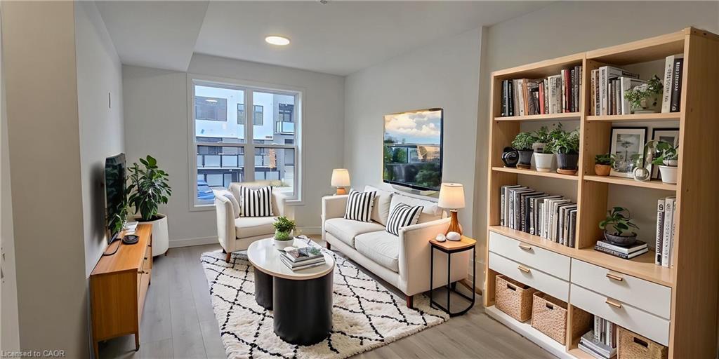 FOR LEASE IN THE VIBRANT NEW VIVA COMMUNITY. Experience modern living at VIVA, the newest and brightest addition to Downtown Kitchener. Located on Mill Street, this exclusive community offers the perfect balance of nature, neighbourhood, and nightlife. Step outside and instantly connect with the Iron Horse Trail—ideal for walking, running, and cycling—and enjoy quick access to parks, green spaces, the iON LRT, and all the vibrant amenities that downtown has to offer. Victoria Park is also just moments away, featuring scenic grounds, recreation areas, and seasonal activities. This beautifully crafted Monstera interior model stacked townhome features a bright open-concept main floor designed for both comfort and entertaining. The kitchen is thoughtfully appointed with quartz countertops, a breakfast bar, stainless steel appliances, and ceramic and luxury vinyl plank flooring throughout. Offering 997 sq. ft., this unit includes 1 bedroom + a den—perfect for a home office or reading nook—and 1.5 bathrooms. Live in a professionally landscaped community where peaceful residential living meets the convenience of city life. Whether you’re grabbing your morning coffee, running errands, or heading to yoga in the park, everything is within reach. .Heat, hydro, water, and hot water heater are to be paid by the tenant(s). Good credit is required, and a full application must be submitted. AVAILABLE immediately! Photos are virtually staged AND a likeness from exact same unit.