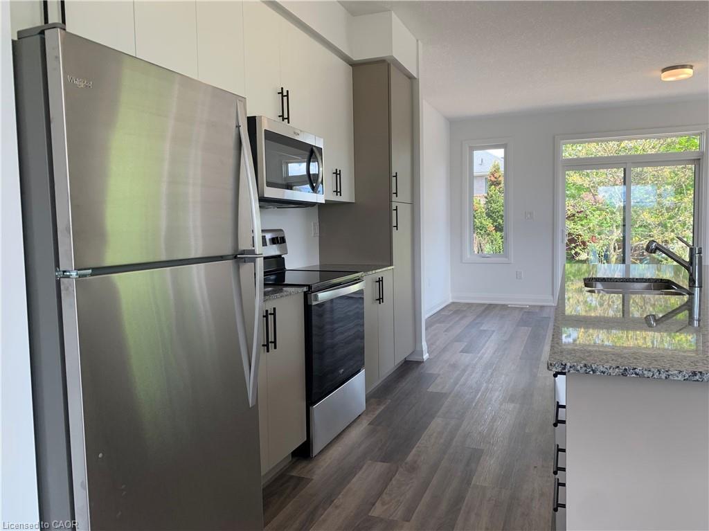 MODERN LIVING IN NATURE’S SERENITY! This exclusive community overlooking Speed River offers modern townhomes finely crafted with unique stone, glass, and wood aesthetic features. This BUNGALOW Snow model comes complete with granite countertops, luxury vinyl plank flooring throughout, stainless steel appliances, and balcony views from the living/dining room. 3 bedrooms and 2 full bathrooms including the primary with a contemporary glass-enclosed shower. They are offering over 1500sqft in addition to the unfinished basement - which is ideal for storage. Thrive in the heart of Hespeler just steps to Hespeler Village and enjoy the artisan bakeries, shops, and craft breweries. Plan a day for scenic cycling with several close by trails. Take a stroll through Forbes Park, or along the Mill Pond Trail to Ellacott Lookout and feel truly at peace in this stunning, natural environment. MINUTES TO THE 401. Heat, hydro, gas, water, tenant insurance and hot water heater are to be paid by the tenant(s). Good credit is required, and a full application must be submitted. photos are ai staged. Available January 1st. PHOTOS are staged.