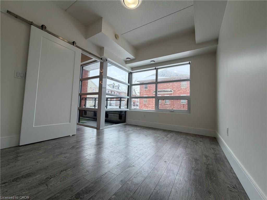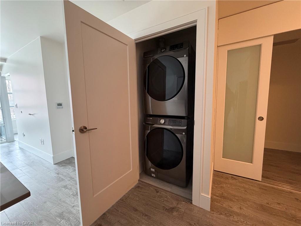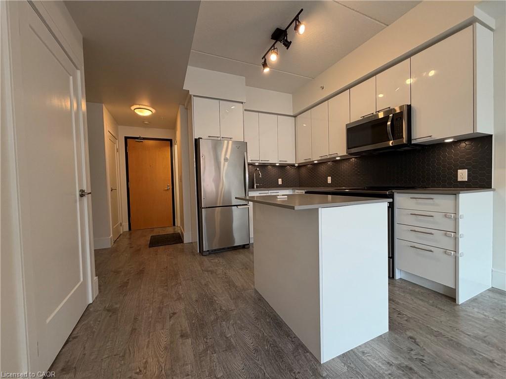 Well-Maintained, Bright and functional 1 BEDROOM + DEN Condo offering an efficient layout in a convenient Kitchener location. The enclosed den features a sliding door and walk-in closet, making it ideal for a home office or guest/secondary bedroom. A full bathroom is conveniently located across from the den, perfect for guests, while the primary bedroom includes a private ensuite. The unit features a moveable centre island for added flexibility and workspace, along with upgraded washer and dryer. One underground parking space and one storage locker are included. Building amenities include a party room and a fully equipped fitness centre. Ideally located close to groceries, shopping, and everyday amenities. Just minutes to highway access, Kitchener GO Station, LRT, the Tech Hub, Downtown Kitchener, Victoria Park, Fairview Park Mall, and major commuter routes.