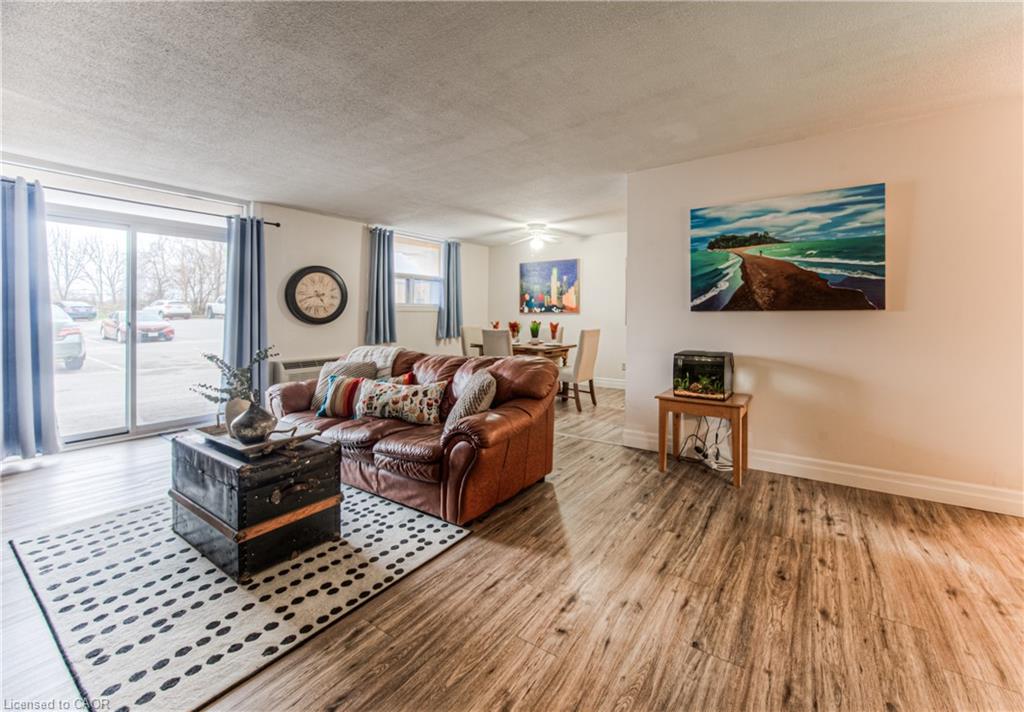 OFFERS WELCOME ANYTIME! Ground-Floor 2-Bedroom Condo in Prime Kitchener Location! Enjoy the ease of low-maintenance living in this bright and spacious 2-bedroom, 2-bathroom main-floor condo, perfectly located just steps from the Laurentian Power Centre and offering quick access to Highway 7/8 for seamless commuting. Inside, you'll find a smart, open-concept layout with a generous dining area and a walkout to your own private patio, ideal for quiet mornings or relaxing evenings outdoors. The oversized primary bedroom is a true retreat, complete with a walk-in closet and a private 2-piece ensuite for added comfort. Designed with convenience in mind, this unit features blackout blinds throughout for added privacy and climate control, plus a wall-mounted A/C unit to keep you cool in the warmer months. Additional highlights include: Underground parking for year-round ease, a shared laundry room conveniently located just steps from your door and all-inclusive condo fees, covering all utilities for simple budgeting. Whether you're a first-time buyer, looking to downsize, or seeking a great investment opportunity, this move-in ready unit offers exceptional value in a well-connected, amenity-rich neighbourhood. Simple, stylish, and stress-free living. Book your private showing today!