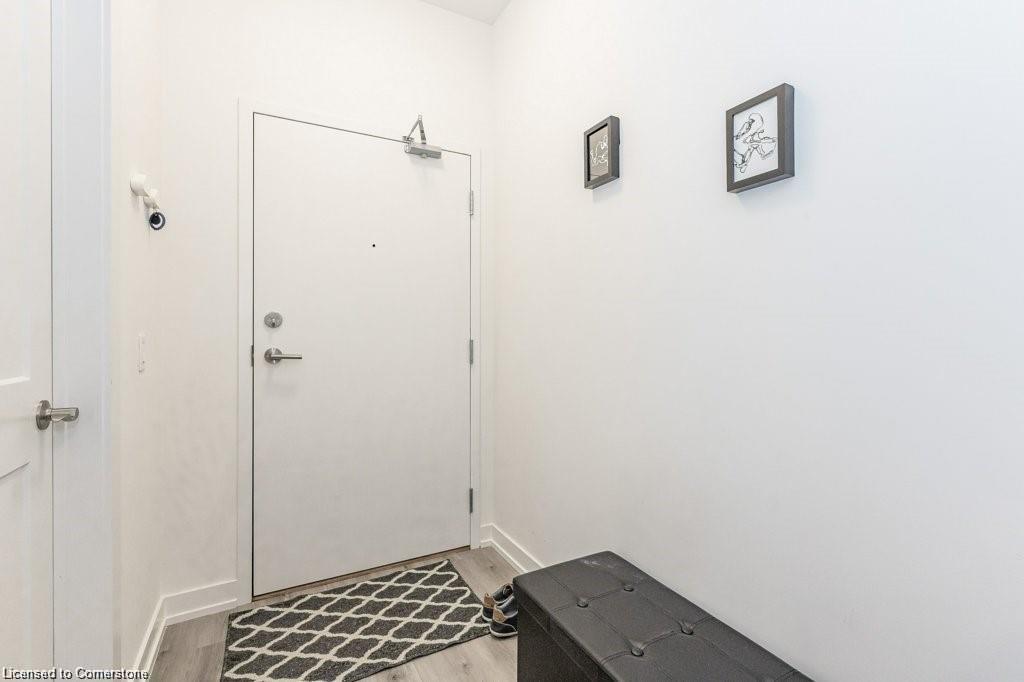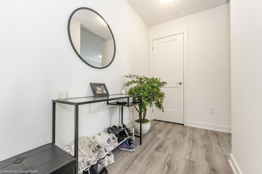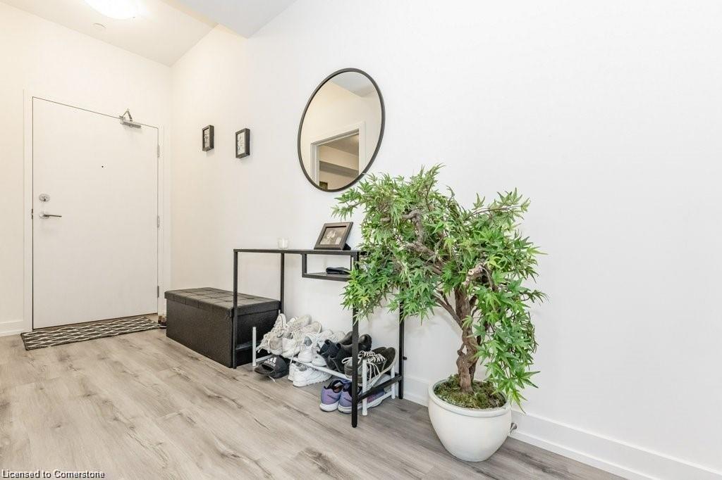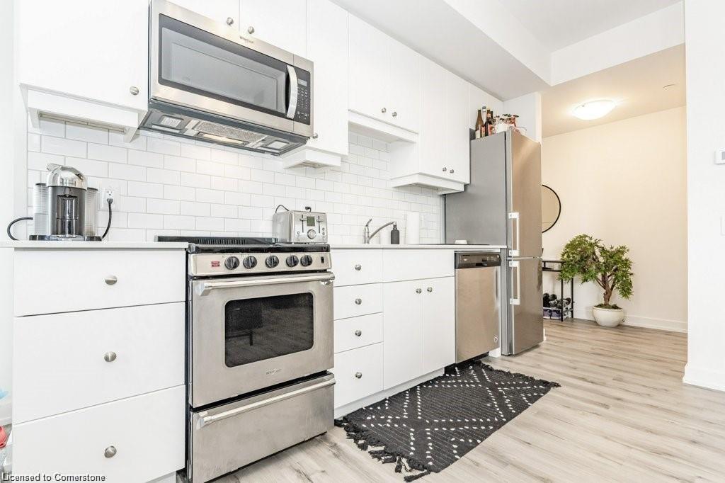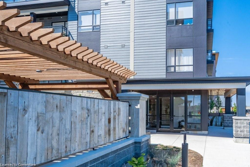 Available September 1st. This sought-after one-bedroom unit in the modern Blackstone complex has all the features you desire: an elegant layout with ample natural light, 9-foot ceilings, upgraded vinyl floors, a walk-in closet, and a balcony. Inside, you'll appreciate the convenience of an en-suite stacked washer/dryer. The kitchen is equipped with upgraded quartz countertops and stainless steel appliances, including a built-in microwave. Residents can take advantage of fantastic amenities such as a fully equipped gym, a vibrant party lounge, and a convenient bike storage room. On sunny days, unwind on the outdoor terrace with BBQs and a cozy gas fire pit. Additionally, there's an outdoor parking spot and storage for winter tires and holiday decorations. Conveniently situated near St. Jacobs farmers market, Conestoga Mall, expressway exits, LRT stations, RIM Park, and picturesque walking and biking trails.