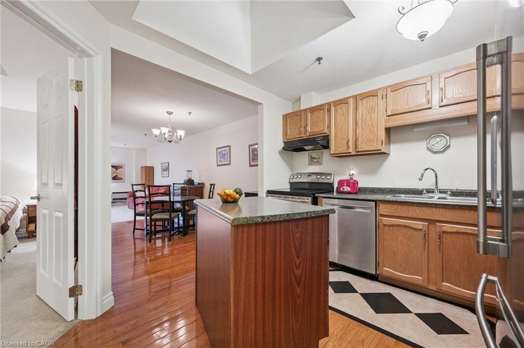 Welcome to 216-1009 Queenston Road in desirable Preston! This spacious 1-storey apartment condo offers comfortable, low-maintenance living in a prime Cambridge location. Featuring 2 bedrooms and 2 full bathrooms, this well-designed unit is perfect for professionals, downsizers, or anyone seeking convenient condo living. The bright open-concept living room provides plenty of space to relax or entertain, while the kitchen with island offers ample prep space, storage, and seating — ideal for casual dining or hosting guests. The primary bedroom includes generous closet space and easy access to a full bath, while the second bedroom is perfect for guests, a home office, or additional family members. Enjoy the added convenience of 1 designated parking space, Private storage locker (approx. 4' x 6'). Located in the heart of Preston, you're steps to shops, restaurants, parks, transit, and quick highway access — making commuting simple while enjoying a vibrant neighbourhood atmosphere. An excellent opportunity to own in a well-established community!