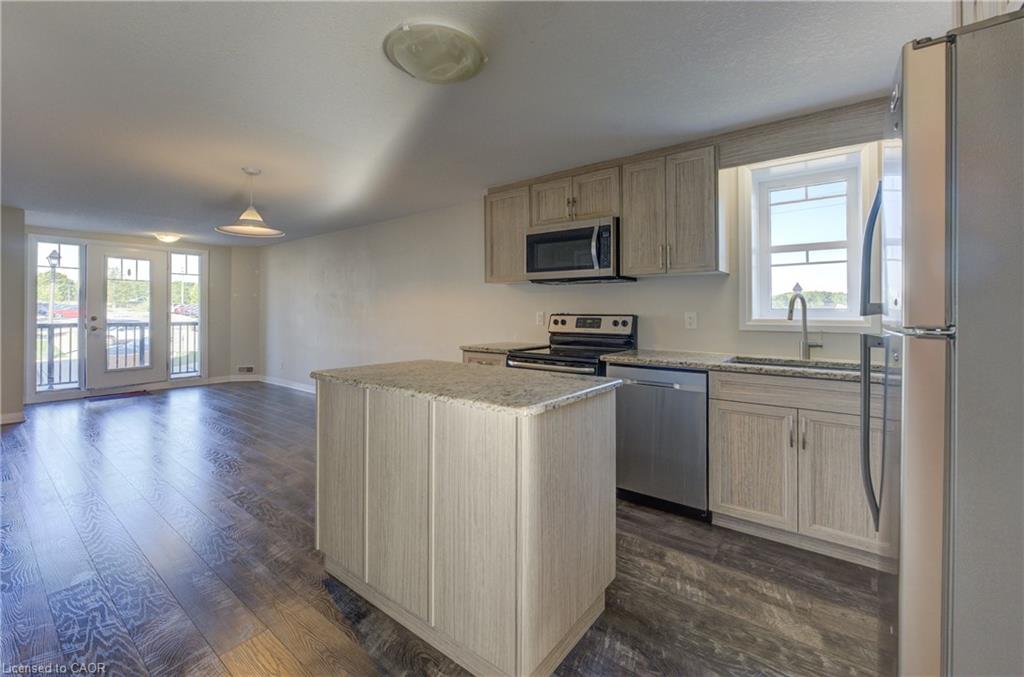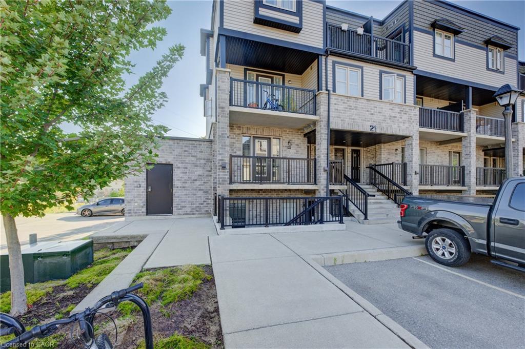Welcome to this bright and inviting CORNER END UNIT urban townhouse condo! This desirable “Brockton” model is a bungalow-style end unit, offering added privacy along with a spacious, open-concept layout. Featuring 2 bedrooms, 1 bath, ensuite laundry, a welcoming front patio, and a private balcony overlooking peaceful greenspace, Thoughtful upgrades include granite countertops, a functional kitchen island, stainless steel appliances, and the added use of a washer, dryer, and water softener. Situated in a well-maintained modern complex with a playground, and ideally located close to shopping, highway access, walking trails, and public transit. Available for June 1st occupancy in a smoke-free building.