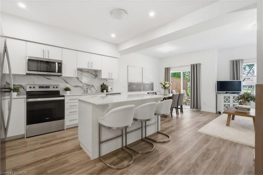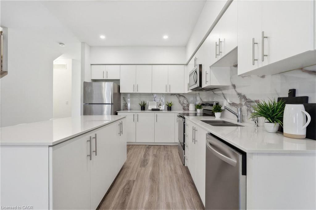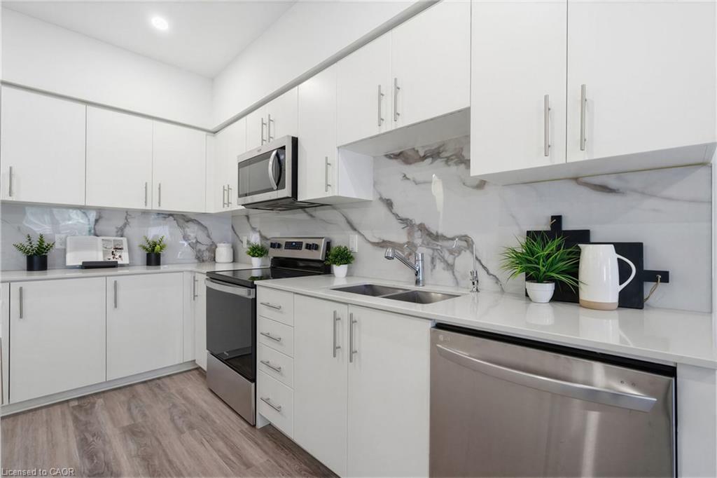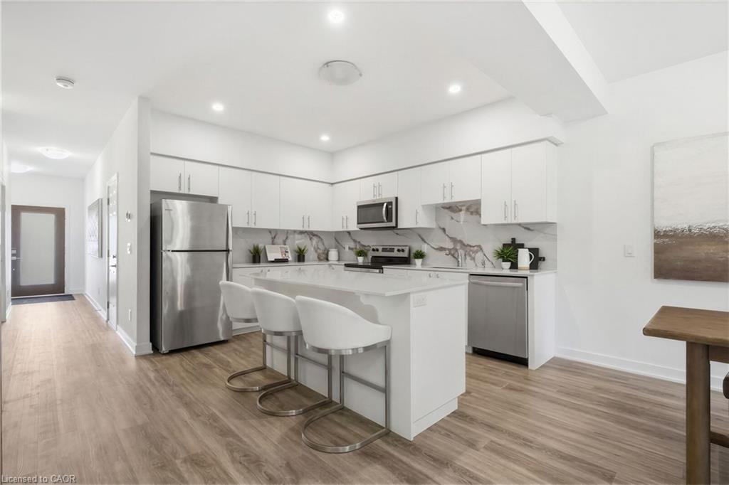 Welcome to 110 Fergus Avenue, Unit 22 — where modern design and a thoughtful layout meet a location that delivers. Built in 2020, the bright, open-concept main floor features 9-foot ceilings and premium finishes throughout. The kitchen boasts quartz countertops, a large center island, and stainless steel appliances. Sliding doors lead to a private backyard with no rear neighbors — a rare find for peaceful outdoor living. A conveniently placed powder room is tucked near the entrance. Upstairs, the spacious primary suite impresses with a private ensuite and a sun-filled walk-in closet. Two additional generously sized bedrooms provide versatile space for family, guests, or a home office. Laundry is conveniently located on the bedroom level with a Washer and Dryer. Quartz countertops in both the main bath and ensuite reflect the home’s consistent quality. The unfinished basement offers a blank canvas for your custom vision. Parking is effortless with an attached garage, a private driveway for a second vehicle. Ample visitor parking nearby within this well-maintained and welcoming condo complex. This home is just minutes from highway access, Fairview Mall, and a wide array of premium shopping, dining, and retail stores. Move-in ready and perfectly positioned — see why life at 110 Fergus simply feels right. Book your showing today.