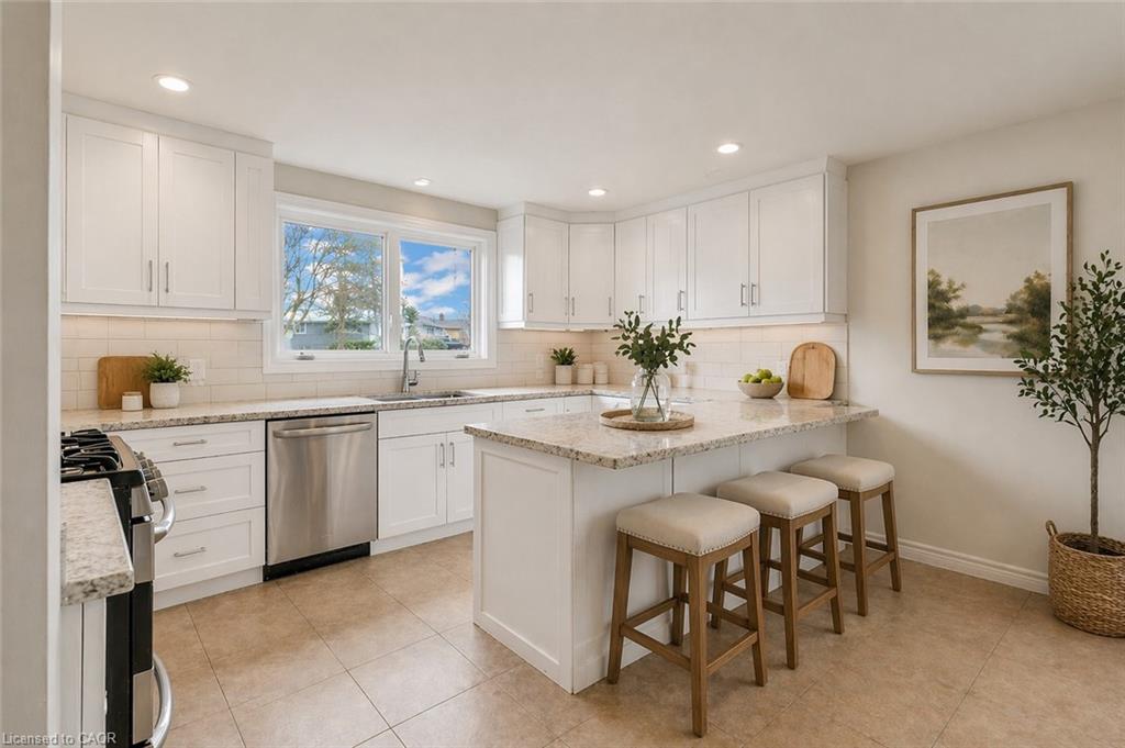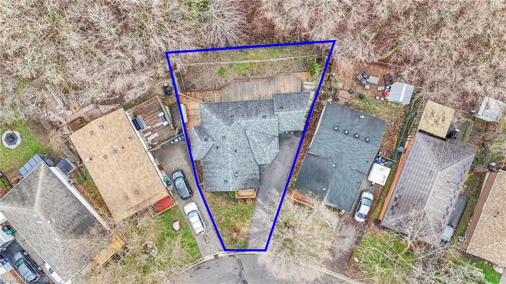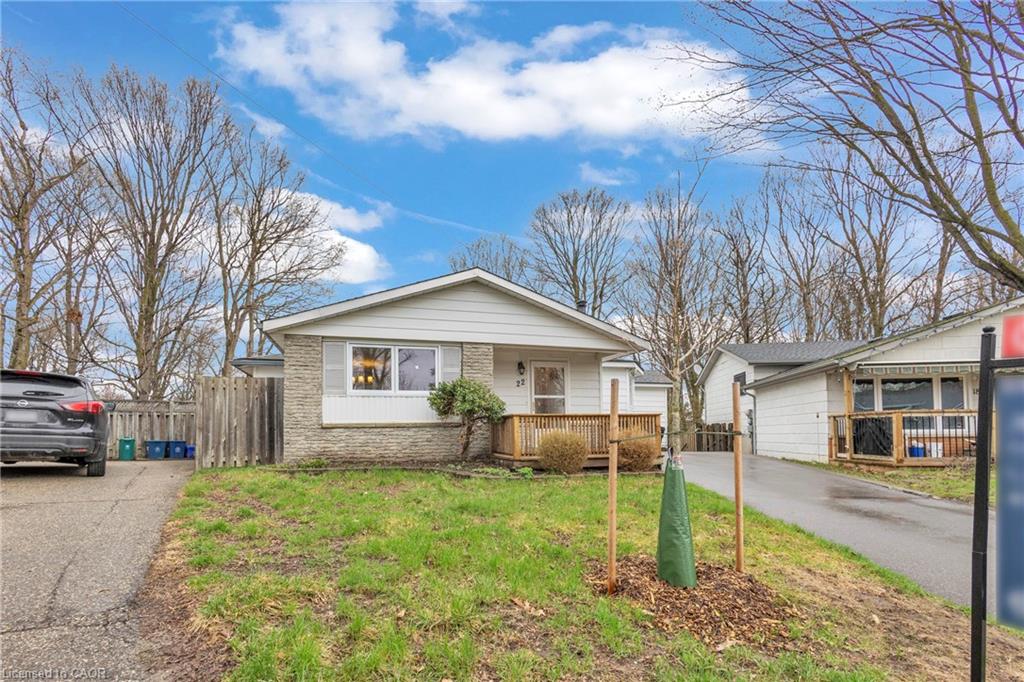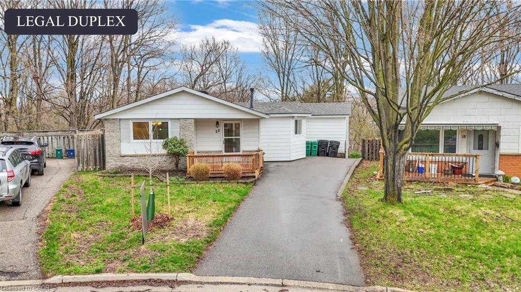 LEGAL DUPLEX IN KITCHENER – 22 Blackhorne Crescent. A beautifully maintained legal duplex bungalow nestled on a quiet crescent in the highly sought-after Laurentian Hills neighborhood of Kitchener. Situated on a spacious lot with no rear neighbors and serene forest views, this property offers exceptional flexibility for both homeowners and investors. The main level features 3 generously sized bedrooms and a well-appointed 4-piece bathroom with a relaxing jacuzzi tub. The bright and inviting living room is filled with natural light and anchored by a cozy fireplace, with a walkout to a raised deck—perfect for entertaining or unwinding. The kitchen is both stylish and functional, offering clean white cabinetry, ample storage, and a gas stove ideal for home chefs. The fully finished legal walkout basement is completed to code and includes a private separate entrance. This self-contained unit offers 2 bedrooms, a spacious recreation/living area, a 3-piece bathroom, private laundry, and a full kitchen with plenty of cabinetry—making it ideal for extended family or rental income. Step outside to a fully fenced backyard featuring two decks, two storage sheds, and plenty of space to enjoy the outdoors in a peaceful, private setting.