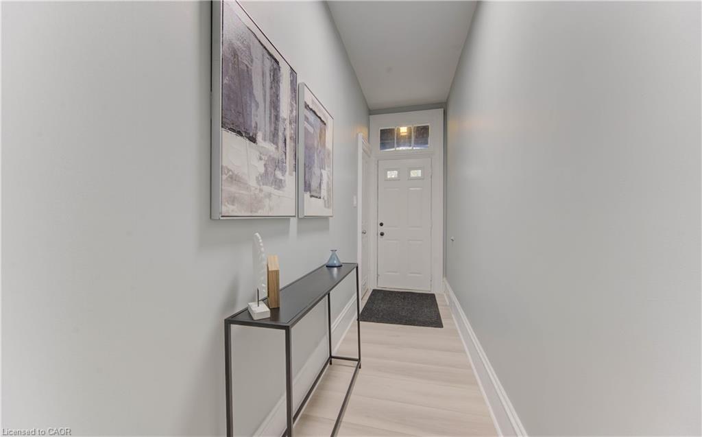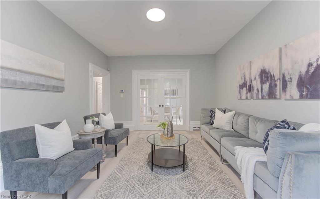 Discover the perfect blend of historic charm and modern upgrades in this beautifully refreshed century home ideally situated on a premium corner lot near downtown Cambridge. Recently updated from top to bottom-inside and out-with fresh paint, new flooring, modern lighting, and upgraded bathrooms, this property offers exceptional versatility for both residential and commercial use. The main floor, previously used as a doctor's office and a paving company's office for several years, features three separate entrances, 10' ceilings, and three spacious rooms, along with a 3-piece bath and a kitchen-ideal for professionals such as lawyers, chiropractors, hairdressers, or doctors looking to operate a business from home. The upper-level apartment showcases stunning Brazilian hardwood floors, a marble-accented 3-piece bath, a spacious bedroom, open-concept living/dining area, and an eat-in kitchen with a gas range and a built-in island with sink. From the kitchen, step out to a freshly painted deck with a gazebo, perfect for relaxing or hosting BBQs. Outside, enjoy ample parking with a triple-wide paved driveway on one side and an extra-deep (over 70 ft) single driveway(unpaved) on the other. Located just minutes from Cambridge's downtown core, with access to city offices, shops, and restaurants, this property truly offers a live-and-work-from-home opportunity you don't want to miss! Note : This Property have 3 Separate Entrances to house and 2 Separate Civic Address as well : 22 Cathay St & 55 Pollock Ave, Cambridge.