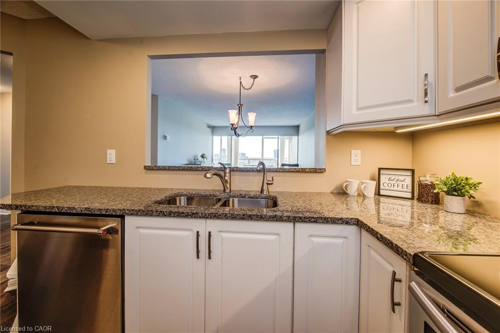 Luxury living at Waterpark Place! In addition to this fully renovated, beautiful home, the well managed building has amazing amenities. Located in Uptown Waterloo which offers trendy shops, dining options and cafes. Walmart and large grocery stores are walking distance as well. Nearby Waterloo Park has a lake, picnic areas, splash pad, sports fields, playgrounds and more. The open concept dining and living spaces are great for entertaining. Amazing views from the wall of windows in the sunroom. This space provides lots of options. Updates galore in this home! The updated kitchen features granite counters, tile flooring, white cabinetry and stainless steel appliances. There are two spacious bedrooms including a primary bedroom with walk in closet and an upgraded ensuite. Both bathrooms have updated vanities, walk in tile showers, new counters and flooring. New flooring runs throughout the space. The building is well run and has large indoor pool, sauna, exercise, party and games rooms, library, outdoor patio area with gazebo, BBQ and lounge areas. Lots of visitor parking. Compete with two underground parking spots and storage locker. Contact me for your private viewing!