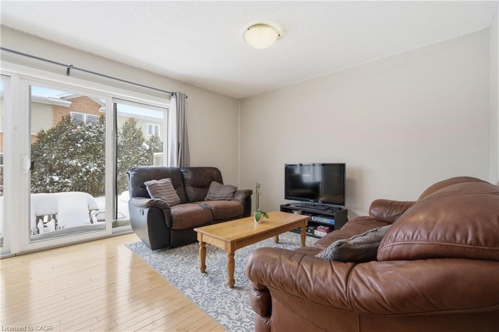 Spacious Townhome in a Prime Location. Welcome to the perfect blend of space, privacy, and convenience. This beautifully maintained townhome offers 3+1 bedrooms and 3.5 bathrooms, making it an ideal fit for families, professionals, or savvy investors. The upper level features three generously sized bedrooms, while the fully finished basement adds exceptional flexibility with an additional bedroom, full en-suite bathroom, and a den-perfect for a home office, guest suite, or extended living. Enjoy enhanced privacy, abundant natural light, and added green space-benefits that truly set this home apart. Modern, carpet-free main floor opens up an inviting open-concept design showcases large windows, sleek hardwood flooring and an open concept, contemporary kitchen. Conveniently positioned just minutes from the University of Guelph, Highway 401, Highway 6, and Stone Road Mall, offering effortless access to schools, shopping, and key commuter routes. Step out to the backyard patio backing onto an ideal setting for relaxing evenings or hosting friends. Unwind in the spacious primary bedroom featuring a walk-in closet designed for comfort and functionality. Includes a cold room for additional storage. A rare opportunity to own a well-appointed townhome in a highly desirable location. Book your private showing today. Management Fee Includes: Snow Removal, Property Management, Garbage Pickup, Insurance, Landscaping, Roof & Windows.
