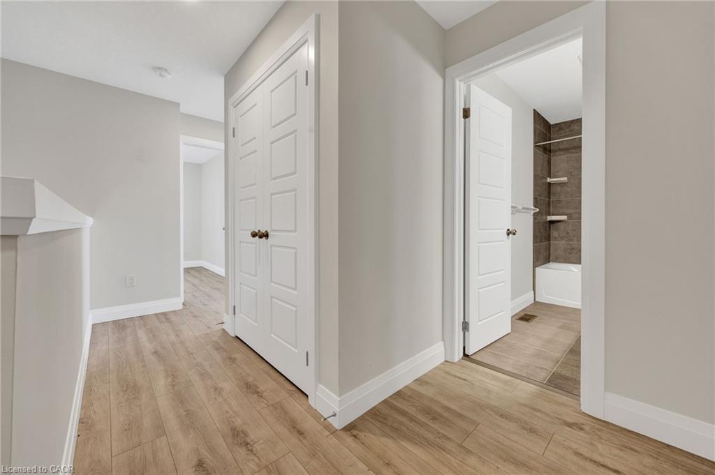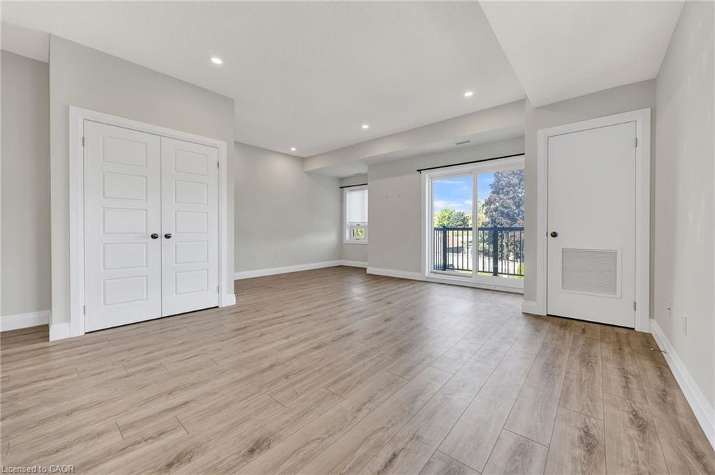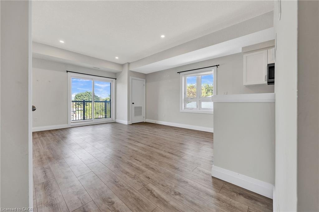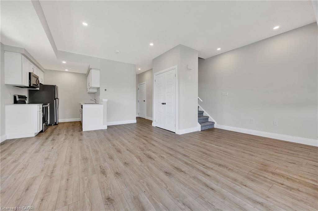 Welcome to a beautifully designed, like-new stacked condo townhouse, offering a stylish, low-maintenance lifestyle perfect for tenants seeking comfort, convenience, and modern finishes. This bright and spacious unit features 2 well-sized bedrooms, 1.5 bathrooms, and one designated parking space, making it an excellent choice for young professionals, couples, or small families. The open-concept main floor features durable, carpet-free flooring, pot lighting, and large windows that fill the space with natural light. The sleek kitchen comes fully equipped with stainless steel appliances, quartz countertops, and ample cabinet storage—ideal for everyday living and entertaining. A convenient powder room on the main floor adds extra functionality, while the upstairs level offers two quiet bedrooms and a full 4-piece bathroom. The primary bedroom includes a walk-in closet for extra storage, and the unit is situated at the back of the complex for added privacy and less traffic. Enjoy a morning coffee or evening break on your private balcony, or take advantage of on-site amenities like visitor parking and a secure bike shed. Located in a well-connected area of Kitchener, this home is just steps from transit routes, with easy access to the ION LRT and major roads for a quick commute. You’ll be minutes from grocery stores, shopping, cafés, restaurants, and everyday essentials at Highland Shopping Centre, and close to scenic Victoria Park for weekend strolls or outdoor activities. Whether you're working from home, commuting downtown, or looking for easy access to Kitchener’s growing amenities, this thoughtfully laid-out and well-maintained unit offers it all. Clean, modern, and move-in ready—this is the rental you’ve been waiting for.