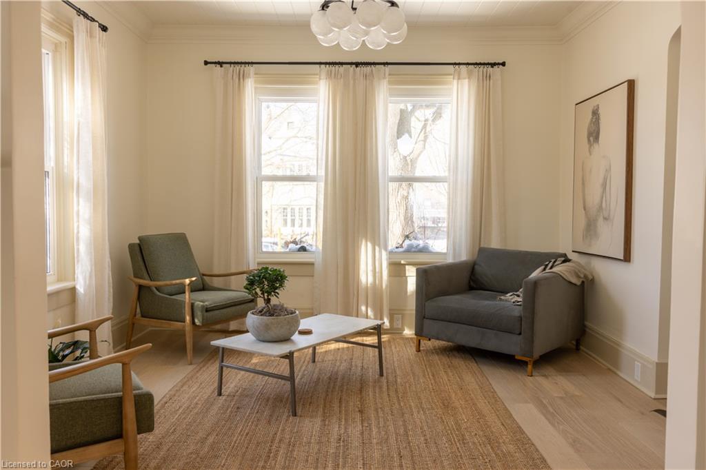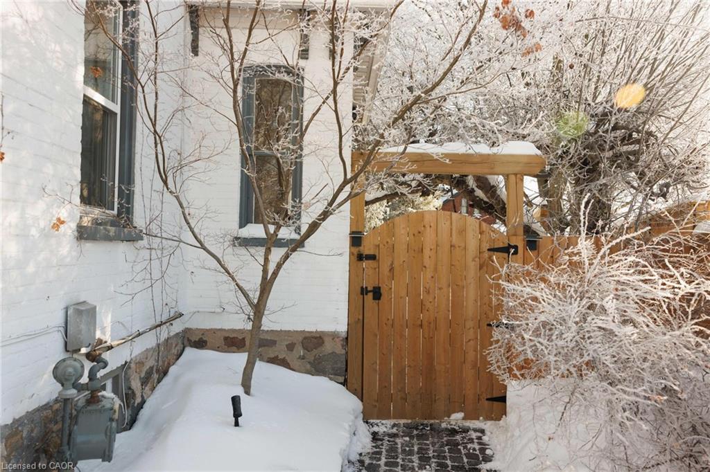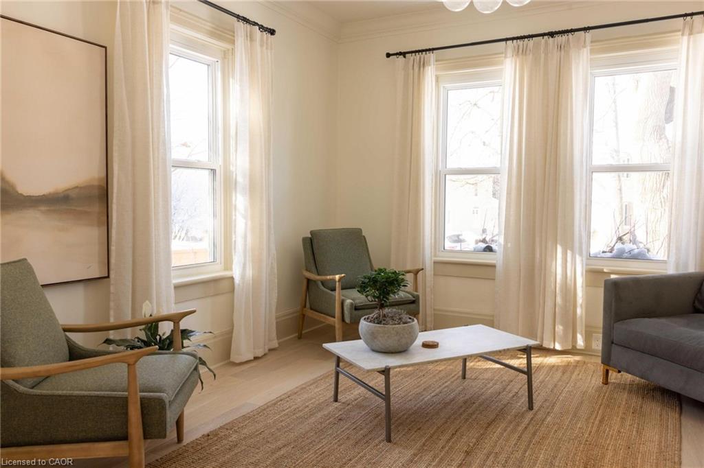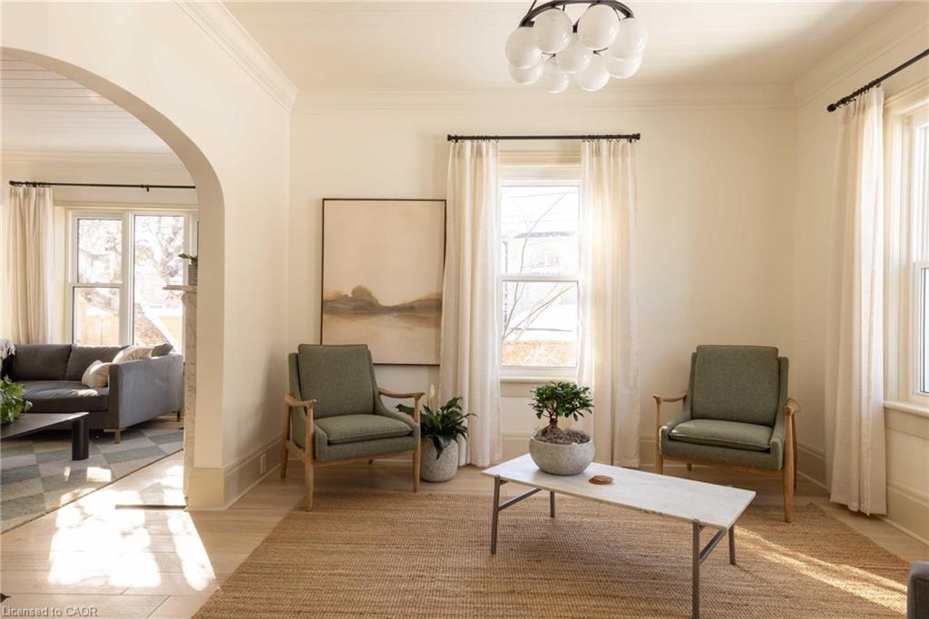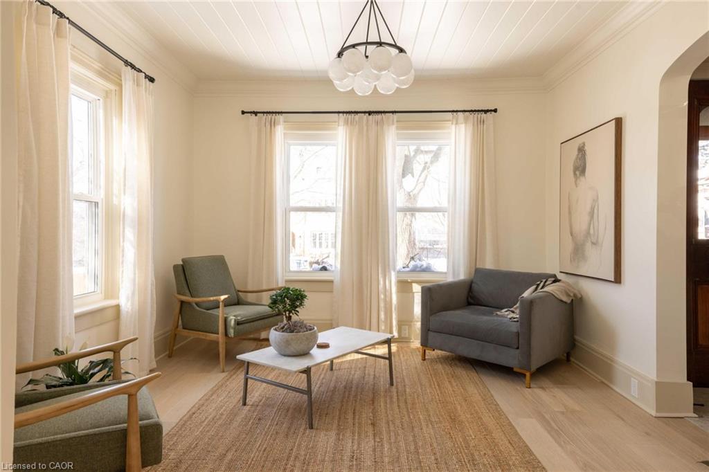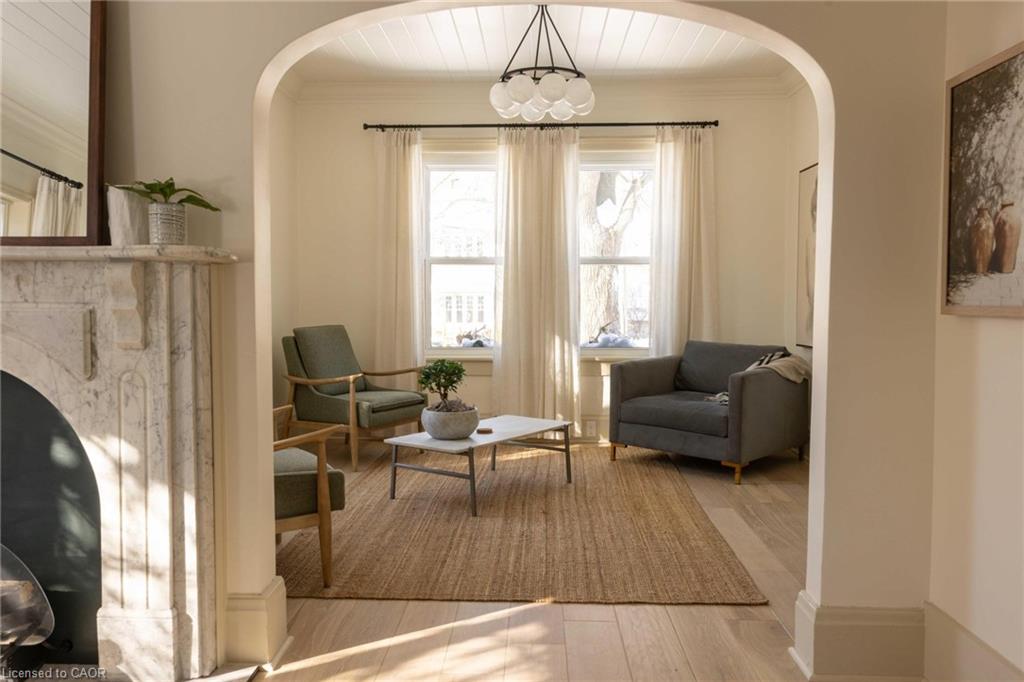 Architectural Integrity Meets Modern Refinement. Discover the perfect blend of history and quality design at 23 Centre Street. This century home, situated on one of Elmira’s most storied, heritage-lined streets, has been reimagined for the buyer seeking both soul and sophistication. Meticulously restored, the interior respects its original character while introducing a curated, organic luxury feel. The main floor features nine-foot ceilings, rising to ten-foot heights on the upper level, creating an expansive, airy atmosphere throughout. A hand-selected Farrow & Ball colour palette serves as the backdrop for iconic Morris & Co. patterns, honouring the home’s heritage while maintaining a contemporary edge. Anchored by a collection of designer and antique light fixtures that cast a warm glow over wide-plank engineered white oak flooring and heated marble and limestone tiles. Oversized windows flood every room with natural light, highlighting the crisp, clean lines of the professional restoration. Beyond the aesthetics, the home is equipped for the future with a 200 AMP electrical panel, dedicated EV charging, and fully updated bathrooms that blend timeless materials with modern fixtures. The property is a study in professional landscaping, designed to offer a private sanctuary. Unwind on the upper balcony, around the fire pit or lounge on the stamped concrete patio. The gardens provide year-round visual interest, providing a lush, serene space that mirrors the elegance of the interior. Situated in a welcoming neighbourhood excited for those who choose to call it home, just steps from the downtown shops and a short drive to the St. Jacobs Farmers’ Market, Canada’s largest year-round market. Enjoy the Woolwich Memorial Centre, featuring state-of-the-art fitness facilities and pools, the extensive G to G Trail system for cycling and hiking or immerse yourself in the local history, from the iconic West Montrose Covered Bridge to the seasonal Elmira Maple Syrup Festival.