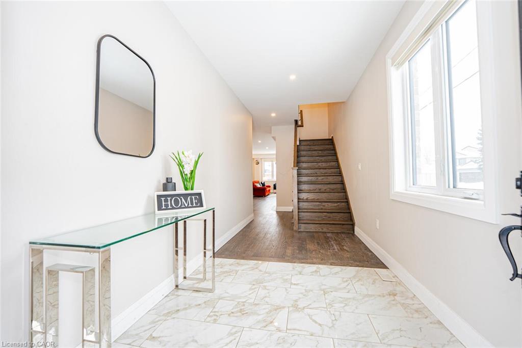 Stunning!! Highly Upgraded Detached Home (2021 Built) on a premium corner lot in one of Kitchener's most sought-after locations. Offering over 3,200 sq ft of total living space, this home is ideal for families, investors, or multi-generational living. Features 4 spacious bedrooms and multiple beautifully upgraded washrooms, including a luxurious primary ensuite with a stand-alone tub, custom cabinetry, and frameless glass shower. The open-concept main floor boasts 9' ceilings, upgraded porcelain tiles, oak hardwood flooring, pot lights, and elegant light fixtures throughout. The chef-inspired kitchen includes stainless steel appliances, quartz countertops, center island, backsplash, and wine fridge-perfect for entertaining. A separate side entrance leads to a fully finished basement with bedroom, kitchen, living area, and 3-piece washroom, offering excellent rental income potential or private space for extended family. 200 Amp connection. Professionally landscaped with concrete work all around, a generous backyard, no sidewalk, and parking for up to 6 cars (4 driveway + 2 garage). Prime location close to shopping, transit, plazas, schools, and all amenities. Excellent opportunity to live in or invest-this home is a must-see!