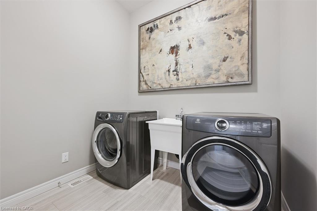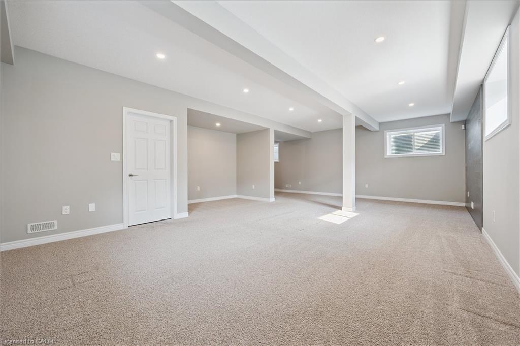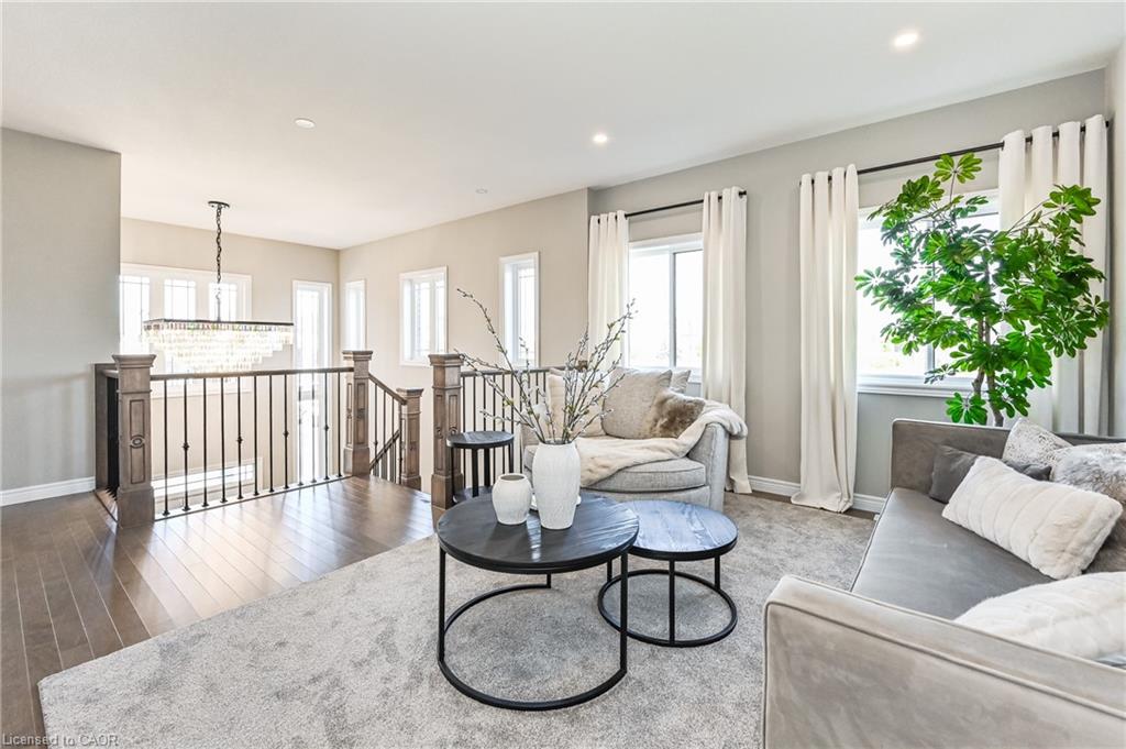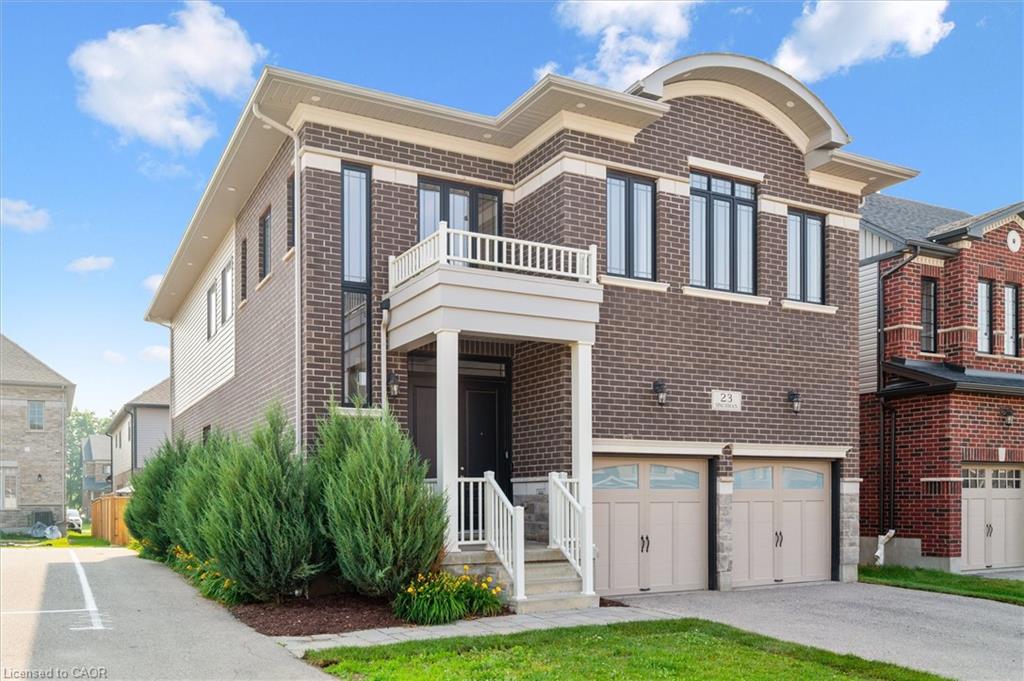 Welcome to 23 Spachman Street, an exceptional opportunity to own the Fusion Homes model residence in the highly sought-after Wallaceton / Huron Park community. Rarely offered, this fully completed and professionally styled model home showcases Fusion’s renowned craftsmanship, premium finishes, and thoughtful attention to detail throughout. Offering over 4,000 sq. ft. of beautifully finished living space, this impressive home features 4 bedrooms and 5 bathrooms, delivering both elegance and functionality. The main level sets the tone with 10-foot ceilings, a striking great room with gas fireplace, waffle ceiling detail, and custom built-ins, and a chef-inspired kitchen complete with quartz countertops, walk-in pantry, wine fridge, and a full 7-piece appliance package—ideal for entertaining and everyday living alike. Upstairs, 9-foot ceilings enhance the sense of space, along with a versatile second-floor family room and four generously sized bedrooms. The primary suite is a true retreat, featuring a freestanding soaker tub, glass-enclosed shower, and dual quartz vanities designed for comfort and relaxation. The fully finished basement expands the living area even further, offering a large recreation space, oversized windows, and a 3-piece bathroom, making it perfect for hosting guests, extended family, or creating a private retreat. From the custom maple staircase with wrought iron spindles to engineered hardwood flooring and designer lighting throughout, every detail reflects the elevated standard expected from a model home. Ideally located just steps from RBJ Schlegel Park, Scot’s Pine Park, schools, and shopping, with quick access to Highway 401 and 7/8, this home delivers both luxury and convenience. This is more than just a home—it’s a rare chance to own a one-of-a-kind model residence, move-in ready and impeccably finished. Only one buyer will have this opportunity.