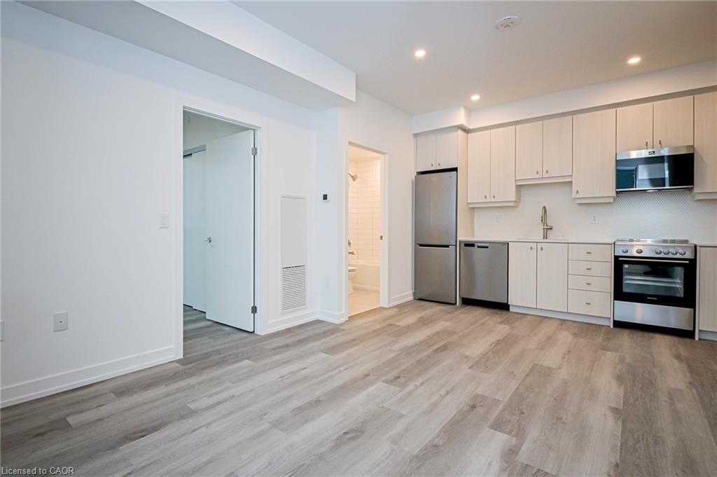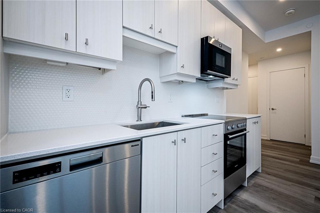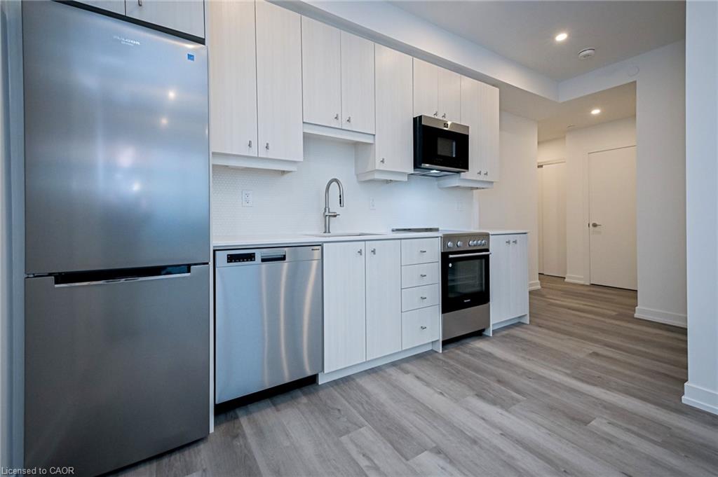Welcome to Station Park in Kitchener, where modern comfort meets urban convenience. Nestled within this vibrant community, we present a remarkable 2-bedroom unit with 2 parking spaces that redefines contemporary living. This spacious and thoughtfully designed residence offers two well appointed bedrooms Upon entering, you'll be greeted by an open-concept layout that seamlessly integrates the living, dining, and kitchen areas. Natural light streams in through large windows, illuminating the interior and highlighting the elegant finishes that adorn the space. The kitchen boasts sleek countertops, stainless steel appliances, and ample cabinetry, creating an inviting environment for culinary adventures. The corner Primary bedroom provides a tranquil retreat, complete with an en-suite bathroom for added privacy. A second bedroom offers versatility – perfect for guests, a home office, or even a cozy reading nook. Forget the stress of searching for parking – you'll have 2 secure spots waiting for you whenever you return home. Outside your unit, Station Park offers an array of amenities to enrich your lifestyle. Whether you're enjoying the rooftop terrace, taking a refreshing dip in the hydro swim pools, or working out in the fitness centre, you'll find plenty of ways to unwind and connect with your neighbours. The building's prime location ensures easy access to public transportation, local shops, dining establishments, and entertainment options, making every day an opportunity to explore and enjoy the best of Kitchener.