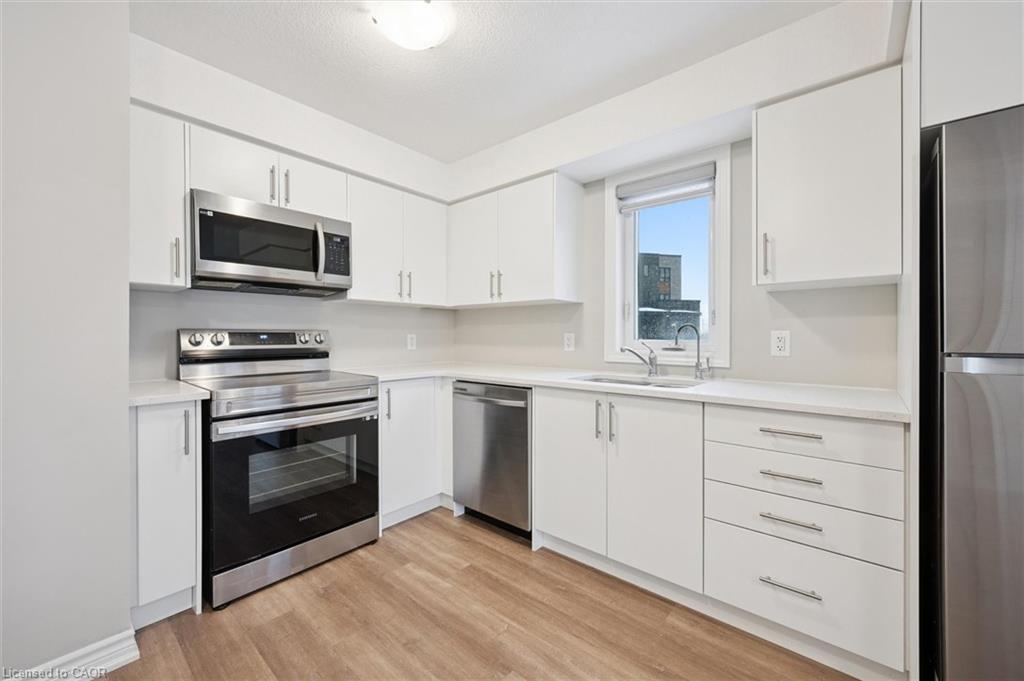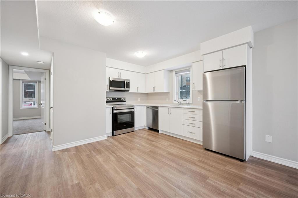 ATTENTION RENTERS! Welcome to 239 Chapel Hill Drive, a rare end-unit opportunity available FOR LEASE on a quiet street in sought-after Doon South, one of Kitchener's most connected and community-driven neighbourhoods. Surrounded by scenic trails, lush green space, and top-rated schools, this location offers the perfect balance of nature and convenience with quick 401 access, nearby colleges, and everyday essentials just minutes away. Inside, this modern 2-bedroom, 1-bath townhome features a bright open-concept layout that seamlessly blends the kitchen and living space, complete with a walkout to your private balcony - perfect for morning coffee or evening unwinding. As an end unit, you'll enjoy added privacy and natural light. Ideal for professionals, small families, or anyone seeking a stylish and well-located place to call home, this is a leasing opportunity you won't want to miss.