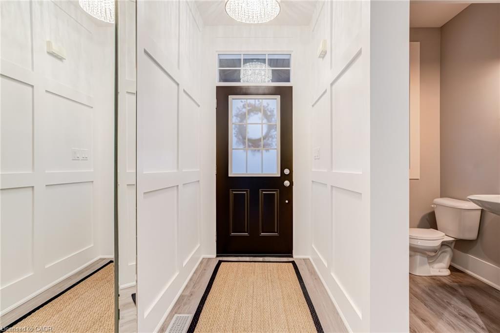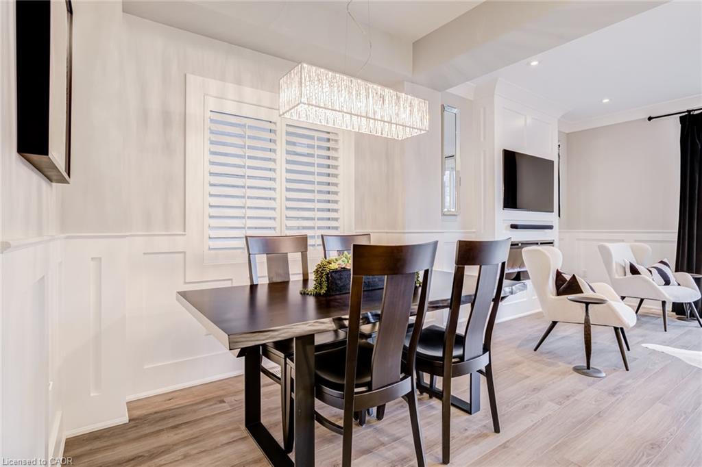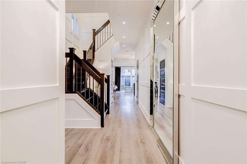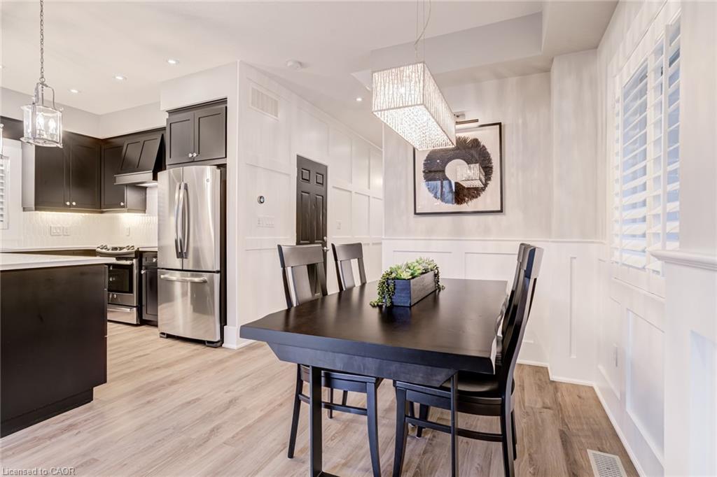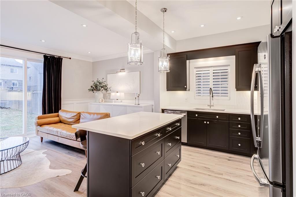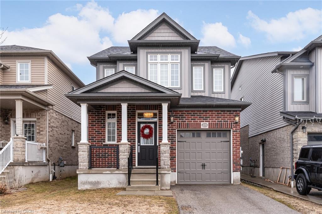 Set in the sought-after Doon South community of Kitchener, this open concept 3-bedroom, 2.5-bathroom detached home was built in 2015 and has been thoughtfully updated throughout, with brand new flooring replacing all carpet. The home offers 9-foot ceilings, crown moulding, wainscoting, and California shutters throughout. A beautiful kitchen with quartz counter tops and upgraded appliances overloops an open concept living room and dining room, anchored by an electric fireplace, and oversized sliding doors to the fully fenced backyard. The second floor boasts a large primary bedroom with a walk-in closet and 3-piece ensuite, two additional bedrooms, and a 4-piece bath. The spacious basement with large windows and bathroom rough-in is ready for your finishing touches. Located steps to the trail system, 2km to the Grand River walking paths, 3.5km to Highway 401 and Conestoga College, 10 minutes to Chicopee Ski Hill, and 15 minutes to the Cambridge Gas Light District.
