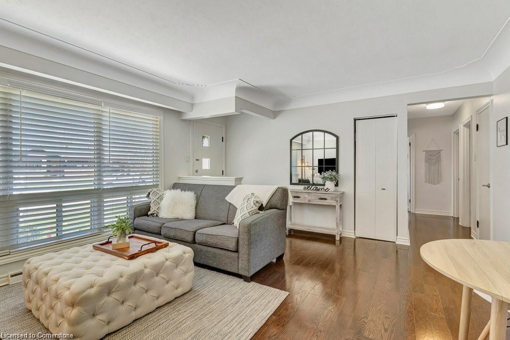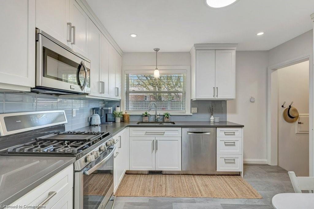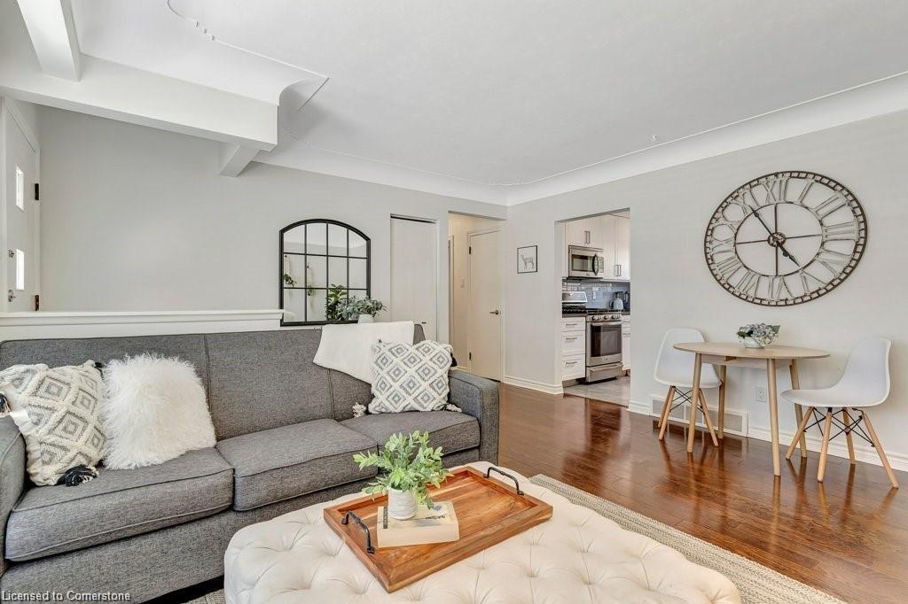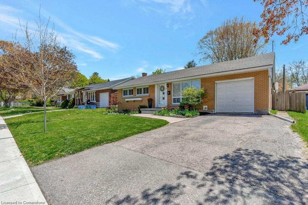 Welcome to 239 Royal St. Discover this charming bungalow located in a highly desirable Waterloo neighbourhood. This well-maintained home has had several updates that bring out its charm. The main floor boasts three bright bedrooms and a beautiful newly renovated four-piece bathroom. Natural light floods the open-concept living and dining area through a generous window. The cozy, updated kitchen, featuring soft-close cabinets, a Peka magic corner, Solatube and a gas stove, overlooks a fenced in backyard. Main floor is carpet free with engineered hardwood throughout the living room, hall and bedrooms. Partially finished basement offers a spacious recreation room, cozy gas fireplace and an additional three-piece bathroom. A convenient side entrance adds potential for an in-law suite. Situated on a picturesque, tree-lined street in a family-friendly area, this home is just moments from parks, trails, shops, and the Expressway.