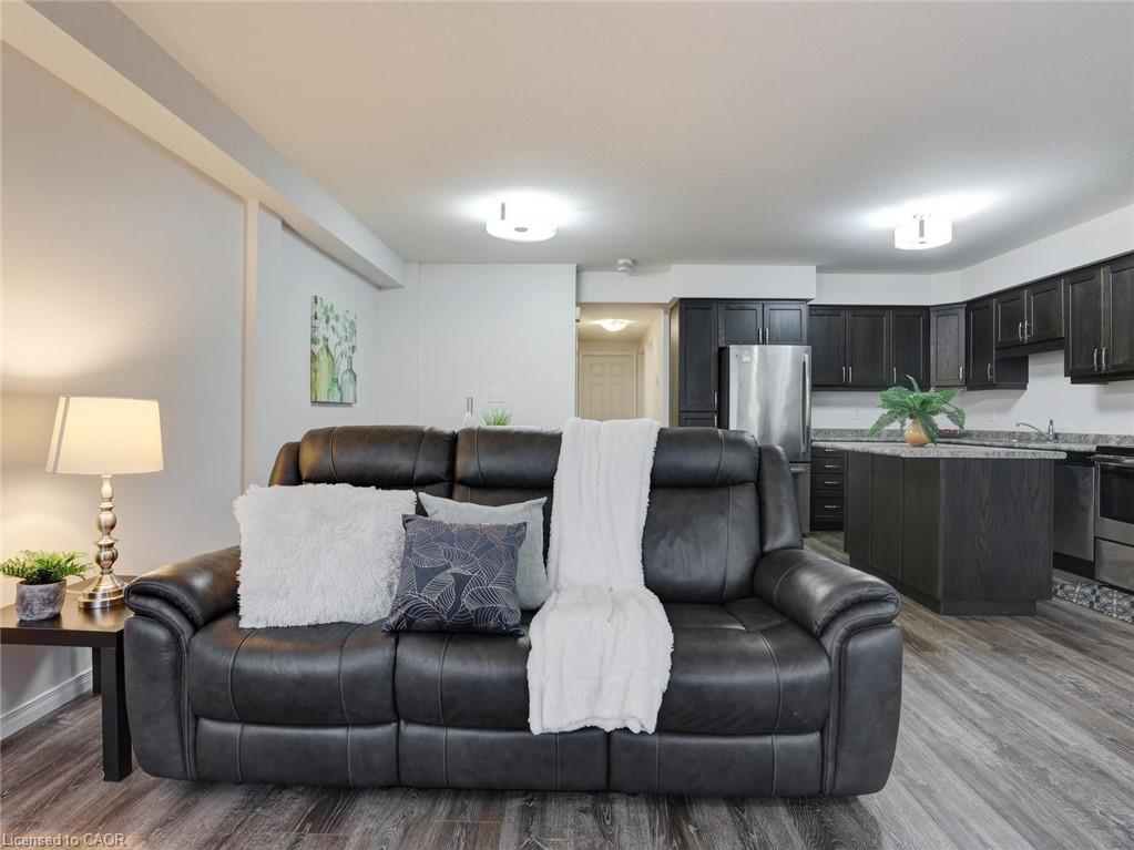 Welcome to this gorgeous stacked townhouse condo offering the perfect blend of comfort, convenience, and modern design! This beautifully maintained 2-bedroom, 1-bathroom unit features an open-concept layout with carpet-free living, neutral tones, and a bright, inviting atmosphere. The modern kitchen is a showstopper—complete with stainless steel appliances, stylish cabinetry, a large island with breakfast bar, ample storage, and sleek finishes. The spacious living and dining area make entertaining a breeze, while the private covered front patio offers a peaceful outdoor retreat. Both bedrooms are generous in size, including a large primary with great closet space. Enjoy the convenience of in-suite laundry, a large walk-in front storage closet, and an additional utility room for even more storage options. Recent updates include fresh paint throughout and upgraded lighting. Perfectly located in highly sought-after Laurentian West, this home is just minutes from The Boardwalk, Sunrise Shopping Centre with superstores like Walmart, Canadian Tire, Home Depot and more, as well as schools, parks, trails, playgrounds, and quick access to Hwy 7/8/401. The well-kept complex features visitor parking and a private playground, making it ideal for first-time buyers, downsizers, or investors seeking a move-in-ready home in a fantastic location. With parking right in front of your unit, a quiet community setting, and close proximity to everything you need, this stylish condo truly checks all the boxes. Move right in and start enjoying modern living at its best—this is the one you’ve been waiting for!