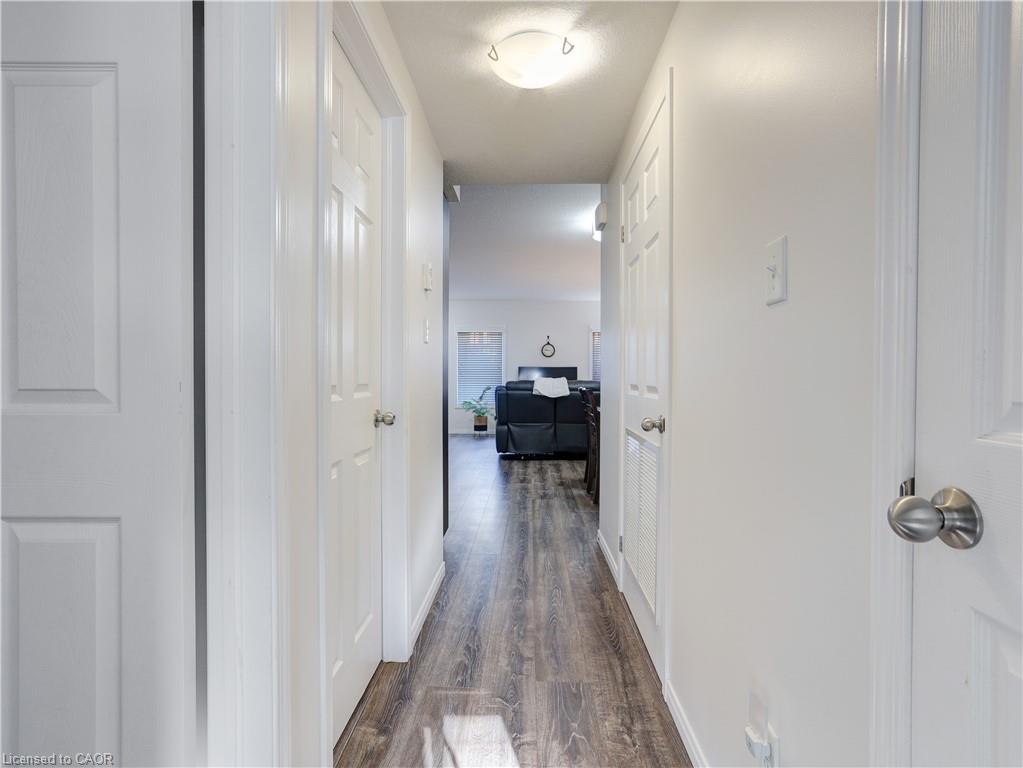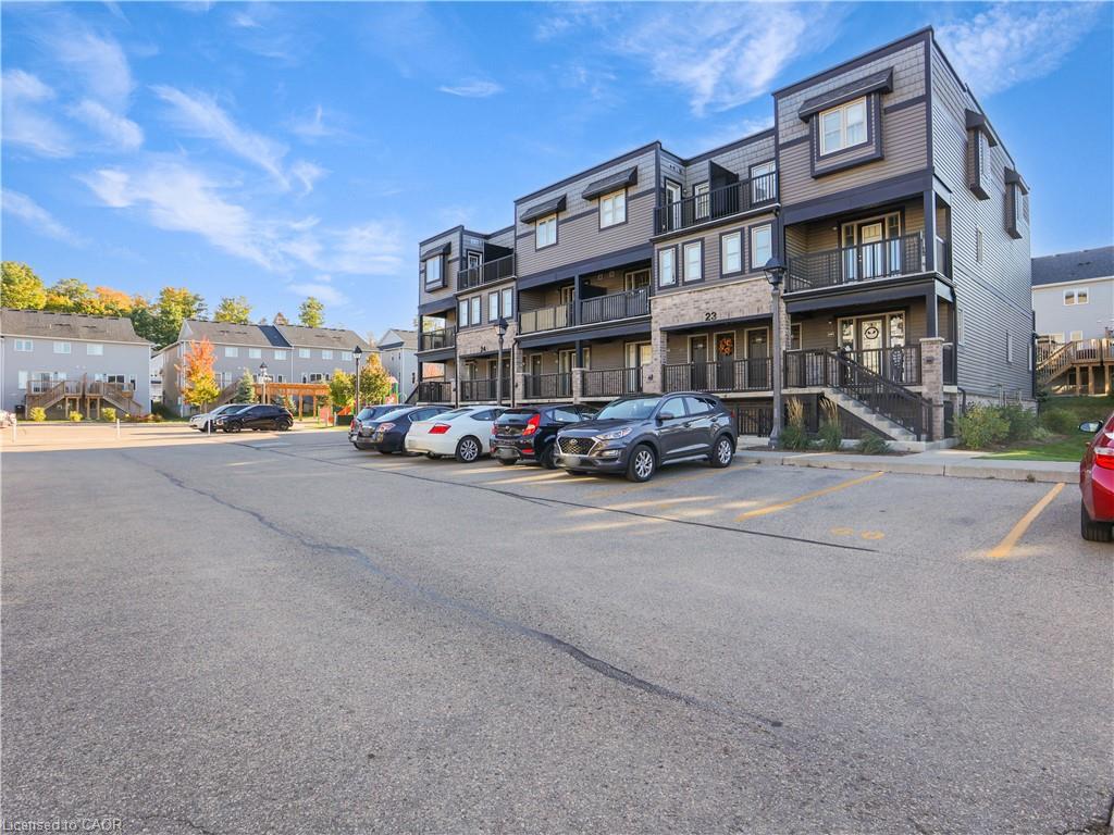 Welcome to this gorgeous stacked townhouse condo offering the perfect blend of comfort, convenience, and modern design! This beautifully maintained 2-bedroom, 1-bathroom unit features an open-concept layout with carpet-free living, neutral tones, and a bright, inviting atmosphere. The modern kitchen is a showstopper—complete with stainless steel appliances, stylish cabinetry, a large island with breakfast bar, ample storage, and sleek finishes. The spacious living and dining area make entertaining a breeze, while the private covered front patio offers a peaceful outdoor retreat. Both bedrooms are generous in size, including a large primary with great closet space. Enjoy the convenience of in-suite laundry, a large walk-in front storage closet, and an additional utility room for even more storage options. Recent updates include fresh paint throughout and upgraded lighting. Perfectly located in highly sought-after Laurentian West, this home is just minutes from The Boardwalk, Sunrise Shopping Centre with superstores like Walmart, Canadian Tire, Home Depot and more, as well as schools, parks, trails, playgrounds, and quick access to Hwy 7/8/401. The well-kept complex features visitor parking and a private playground, making it ideal for first-time buyers, downsizers, or investors seeking a move-in-ready home in a fantastic location. With parking right in front of your unit, a quiet community setting, and close proximity to everything you need, this stylish condo truly checks all the boxes. Move right in and start enjoying modern living at its best—this is the one you’ve been waiting for!