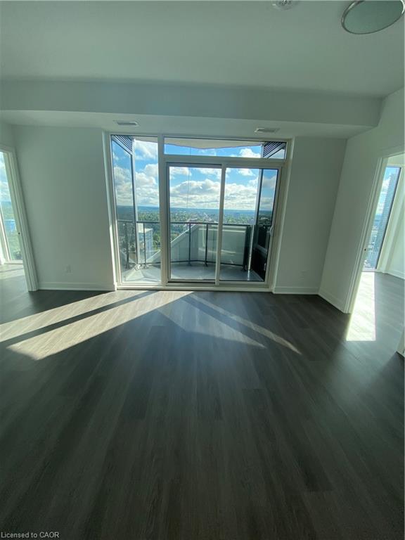 Welcome to DUO Condos, the latest addition to the vibrant Station Park community in downtown Kitchener-where urban convenience meets modern, elevated living. This bright and beautifully finished 2-bedroom suite and 2 bathroom is perched on the 24th floor and offers an open-concept layout with 9-ft ceilings, floor-to-ceiling windows, quartz countertops, sleek cabinetry, high-efficiency stainless steel appliances, in-suite laundry, and a private balcony with stunning city views.The building provides exceptional comfort and peace of mind with 24-hour concierge service. DUO is renowned for its unmatched amenities, including a two-lane bowling alley with lounge, games room with bar, hydro pool, swim spa, unisex sauna, and a fully equipped fitness centre featuring a Peloton studio plus yoga and Pilates areas. The outdoor amenity deck elevates your lifestyle even further, offering an outdoor gym zone, elevated yoga platform, table tennis court, leisure courtyard with astro-turf for lawn games, and beautifully landscaped terraces ideal for relaxation or entertaining.Perfectly located just steps from Google, the LRT, GO Station, restaurants, shops, Grand River Hospital, the Innovation District, and Victoria Park, you'll have everything you need right at your doorstep. This exceptional suite is available immediately-book your showing today and experience downtown living at its finest.