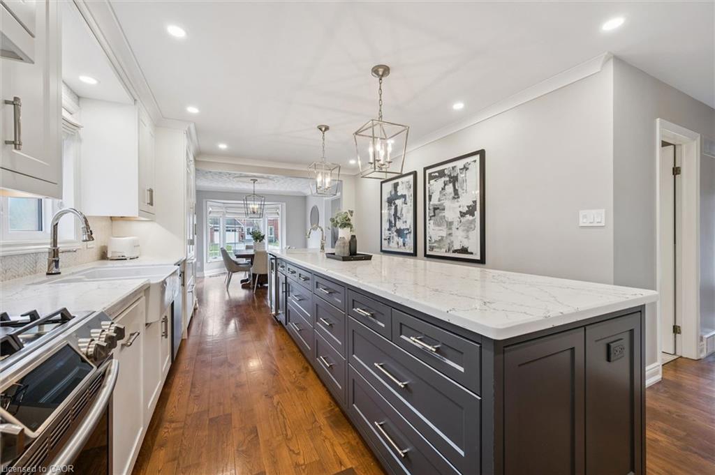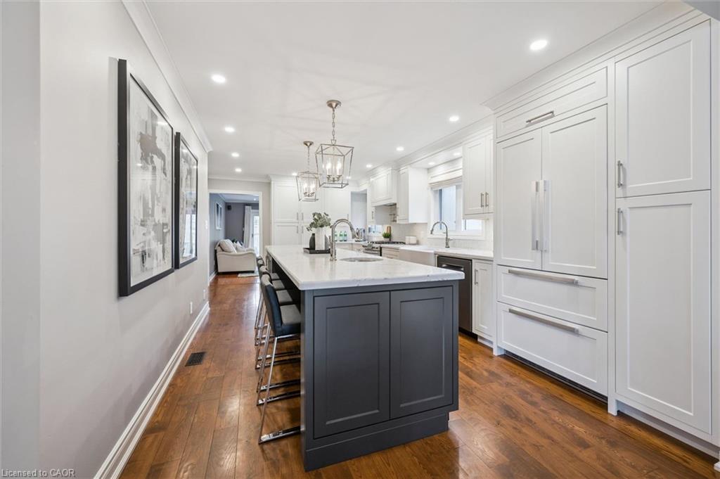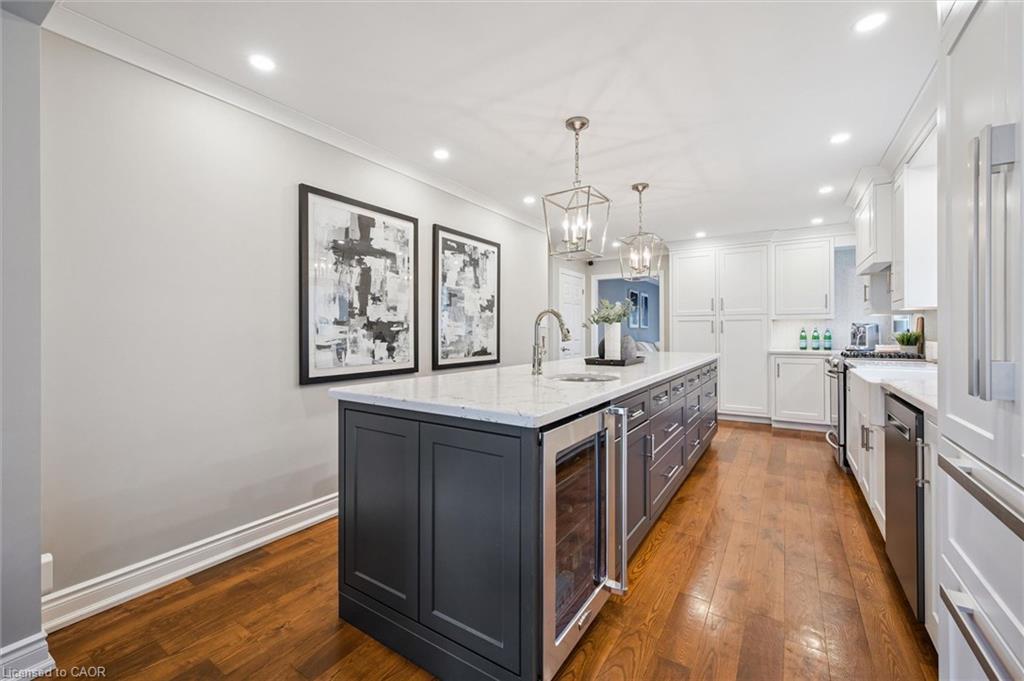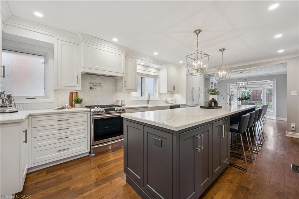 Check everything off your list! Located on a prestigious COURT in COLONIAL ACRES, this meticulously maintained executive Cape Cod home is situated on a 64 x 131 foot lot surrounded by mature trees and peaceful serenity! Welcome inside to a thoughtful floorplan for families who value living space and entertaining. The living room with warm hardwood floors and bright windows is open to a custom designed LUXURY kitchen featuring a huge chef’s island, abundance of cabinetry, quartz counters and herringbone backsplash. High end finishings include a wall mounted pot filler faucet, gas stove and a built in Miele refrigerator! A separate dining area is nearby and perfect for hosting! Also on this level is an additional family room with gas fireplace and backyard access and a two piece powder room. Hardwood continues on the stairway upstairs, featuring a huge primary bedroom with walk-in closet, purposefully located on the back of the home facing an abundance of trees. The LUXURY ensuite was custom designed with heated marble floors, a glass shower, and quartz vanity with dual sinks. Two additional spacious bedrooms (and Office nook!) are also upstairs and have use of their own custom finished bathroom. Heading downstairs is a DREAM LAUNDRY ROOM with island and BONUS: CUSTOM HOME THEATRE! This outstanding renovation includes an authentic Cinema screen and projector, riser with reclining leather seating, acoustic insulation and dimmable wall lighting! With Spring upon us, the private backyard is fully fenced with a huge two tier composite deck and garden shed. Additional updates include windows (2018), roof, eavestroughs and furnace (2017) and bathroom rough-in on the lower level. High end paving stone driveway with ample parking & oversized double garage with storage. Close to parks, trails, the Grand River and minutes to everything you need at East Waterloo’s popular shopping, restaurants & LRT! An amazing opportunity for a fully updated home in a friendly neighbourhood!