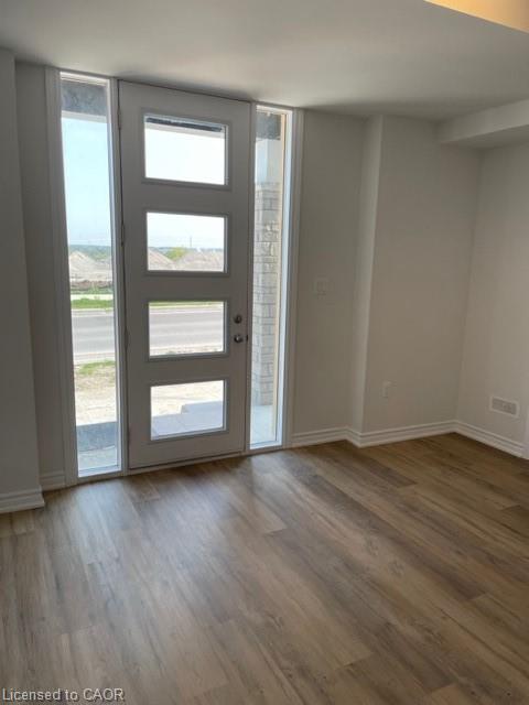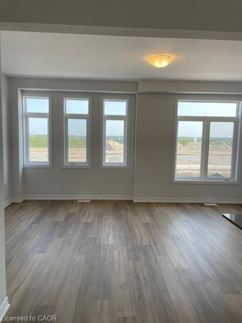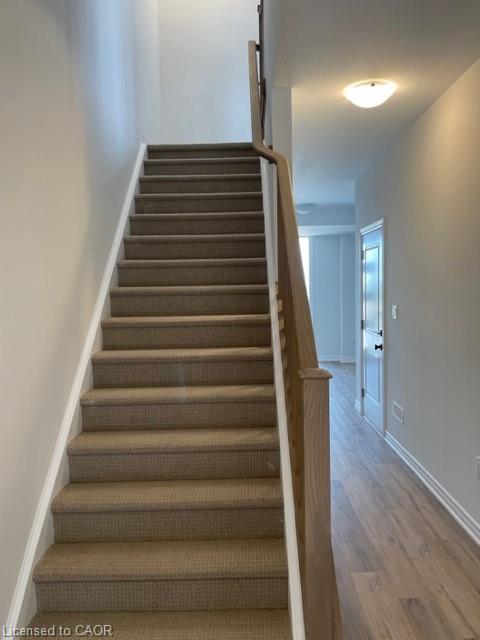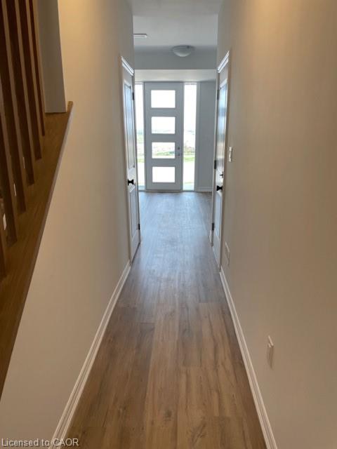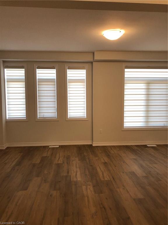 Welcome Home to this bright & beautiful Modern Executive 3 story Townhouse in Hespeler Cambridge. This luxurious home is tastefully upgraded featuring 3 Bedrooms + Den, 4 Washrooms, high ceiling, open concept contemporary layout, large balcony & parking space for 2 cars. The home features entrance from the front & rear side. The main floor offers a Den which can be put to multiple uses such as home office, entertainment room, family room, ect. It also offers a powder room with upgraded vanity with stone counter. The main floor offers extra storage space, closets, and access to the attached garage. The 2nd floor features a beautiful open concept layout with a big living room, upgraded kitchen with oversized breakfast island & pantry (upgrades include; tall cabinets, oversized island, solid countertop, modern backsplash, Stainless Steel Chimney, Stainless Steel Samsung Appliances including Gas Stove), dining area, walkout to beautiful balcony, second powder room & high ceiling. The 3rd floor offers Primary bedroom with upgraded En-suite (double vanity with solid countertop, standing shower with glass enclosure) & a big walk-in closest along with 2 other decent sized bedrooms & laundry. The stunning modern exterior elevation is sure to impress. Thousands of $$ spent on tasteful upgrades for the tenant to enjoy and take pride in living (stair walls converted to railings for openness, all door & cabinet knobs & handles, kitchen & bathroom countertops, ensuite with standing shower & glass door, zebra blinds, auto garage door opener, water softener, to list few). The Common Element fees that the owner will pay includes snow removal & grass cutting of the common areas. Additionally, the following are included in the rent; High Efficiency Furnace, HRV, Air Conditioner, Tankless Hot Water Heater, Water Softener, Air Purifier & Smart Thermostat, Auto Garage Opener. Prime Location close to all amenities, schools, parks, trails, pond, shopping, restaurants, Expressway & HWY 401!