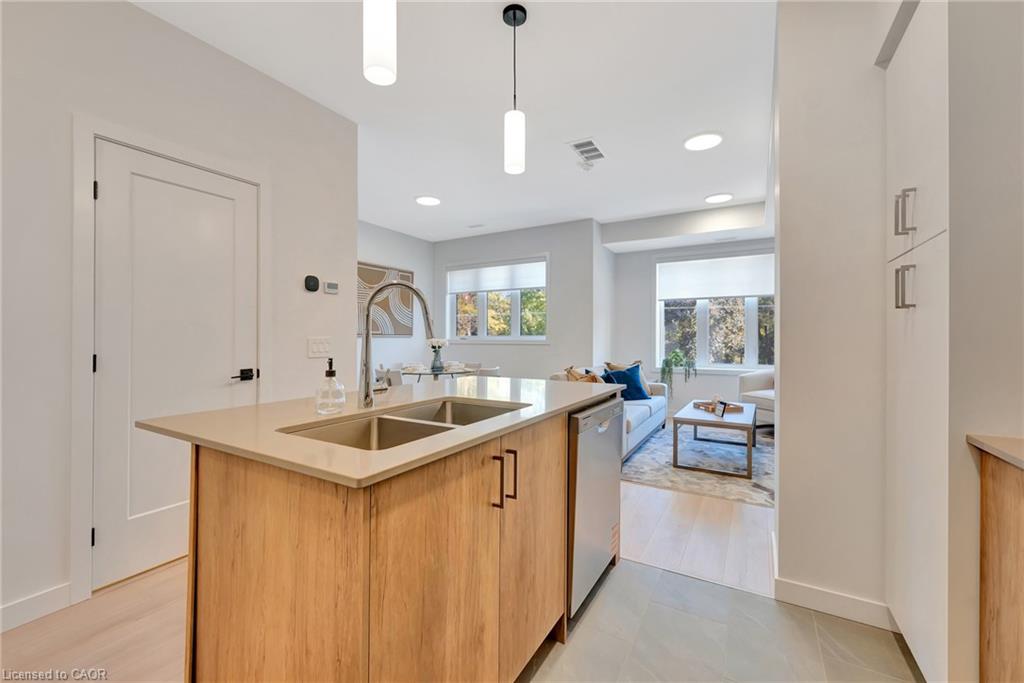 LIVE VIVIDLY AT VIVA – THE BRIGHTEST ADDITION TO DOWNTOWN KITCHENER. Welcome to Viva, a vibrant new community on Mill Street near downtown Kitchener, where life effortlessly blends nature, neighbourhood, and nightlife. Step outside your door and onto the Iron Horse Trail — walk, run, or bike with seamless connections to parks, open green spaces, on and off-road cycling routes, the iON LRT system, and downtown Kitchener. Victoria Park is just steps away, offering scenic surroundings, play and exercise equipment, a splash pad, and winter skating. Nestled in a professionally landscaped setting, these modern stacked townhomes showcase stylish finishes and contemporary layouts. This Hibiscus interior model features an open-concept main floor, perfect for entertaining, with a kitchen that includes a breakfast bar, quartz countertops, stainless steel appliances, and luxury vinyl plank and ceramic flooring throughout. Offering 1,174 sq. ft. of bright, thoughtfully designed living space, the home includes 2 bedrooms, 1.5 bathrooms, and a covered porch — ideal for relaxed living in the heart of Kitchener. Enjoy a lifestyle that strikes the perfect balance — grab your morning latte Uptown, run errands with ease, or unwind with yoga in the park. At Viva, you’ll thrive in a location that’s close to everything, while surrounded by the calm of a mature neighbourhood. Heat, hydro, water, and hot water heater are to be paid by the tenant(s). Good credit is required, and a full application must be submitted. AVAILABLE immediately. Please note the interior images are from the model unit - this is an interior unit.