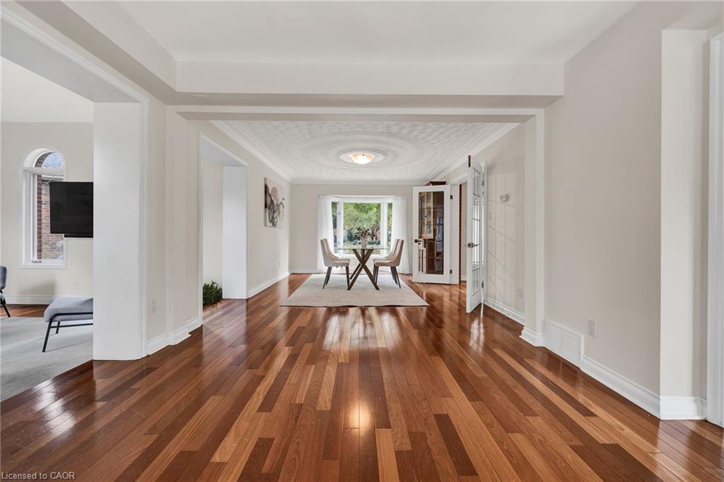 Welcome to 250 Grey Squirrel Place—an elegant family home tucked along a quiet crescent in one of Waterloo’s most desirable neighbourhoods, Colonial Acres, where warmth, space, and sophistication meet. Set on a rare double lot, this property offers exceptional outdoor space and privacy. The moment you step inside, you’re met with a stunning view of the main floor: a vaulted 14-foot ceiling in the front living room anchored by a wood-burning fireplace and framed by gleaming hardwood floors. A second wood fireplace enhances the cozy atmosphere in the main-level family room, while a dedicated office provides a quiet workspace. The mudroom/laundry room, conveniently located by the garage entrance, adds everyday practicality. The kitchen is designed for connection and function, featuring granite counters, Bosch stove and Miele appliances, and a walkout to the brand-new 2025 tiered wood deck overlooking the double-sized backyard—complete with a sports court, two Honeycrisp apple trees, and a peach tree, offering the perfect space for family play, gardening, or summer entertaining. Upstairs, you’ll find four generous bedrooms, including a serene primary suite with an ensuite, along with a second full washroom. The fully finished basement extends your living space with two additional bedrooms, a three-piece bathroom, and a large recreation room perfect for movie nights or weekend gatherings. With a double-car garage, interlock driveway, and mature trees surrounding the property, every detail speaks to comfort and quality. Ideally located minutes from Uptown Waterloo, the University of Waterloo, and Waterloo Park, with quick access to The Boardwalk, RIM Park, and Grey Silo Golf Course, this home offers the perfect balance of family living and professional convenience.
