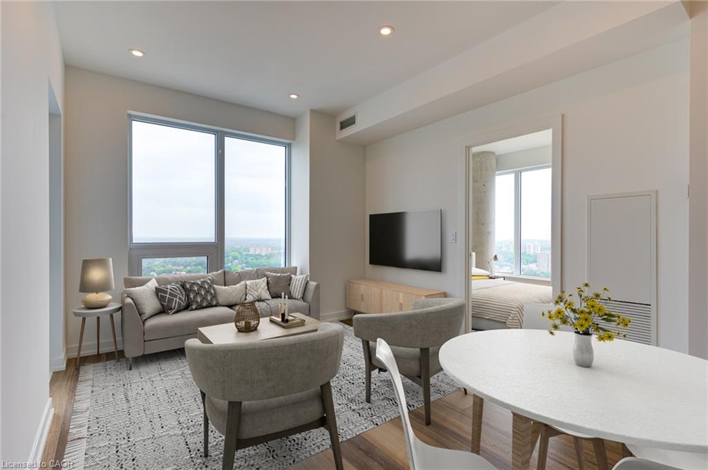 CORNER UNIT WITH PANORAMIC VIEWS! Fully loaded with 20K+ of upgrades! This 2 BED, 2 BATH new condo (2023) includes 1 PARKING SPOT, and 1 LOCKER. Enjoy stunning unobstructed views and sunrises. The highly anticipated building has fantastic amenities including 24 hours concierge, a bowling alley, multiple lounge areas, a Peleton studio, gym, swim spa, dog washing station, landscaped outdoor terrace with BBQs, and so much more. Located in the vibrant Innovation District, a short walk to both Uptown Waterloo and Downtown Kitchener. Easy access to groceries, boutiques, coffee shops, restaurants, parks & recreational trails, as well as the Light Rail Tran (LRT), Go Train, and VIA Rail. INCLUDED IN RENT: Internet, AC & Heat. Don't miss the virtual tour!