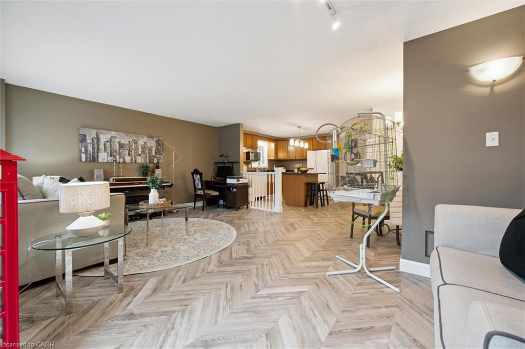 From the moment you arrive, you'll notice the impressive curb appeal featuring, concrete double driveway with exposed aggregate concrete accents. Inside, the main floor features new flooring (2026), a convenient 2-piece bathroom, and a bright open-concept layout with a functional kitchen, island, and dining area. The spacious living room offers double glass doors leading to the private backyard.Upstairs, you'll find 3 spacious bedrooms, including a primary bedroom with vaulted ceilings and a large walk-in closet. The updated 5-piece bathroom features double sinks and a new vanity. The finished basement adds even more living space with a cozy rec room, a 3-piece bathroom with a new vanity, laundry area, and plenty of storage. Freshly painted with modern décor throughout, this move-in ready home is a must-see!