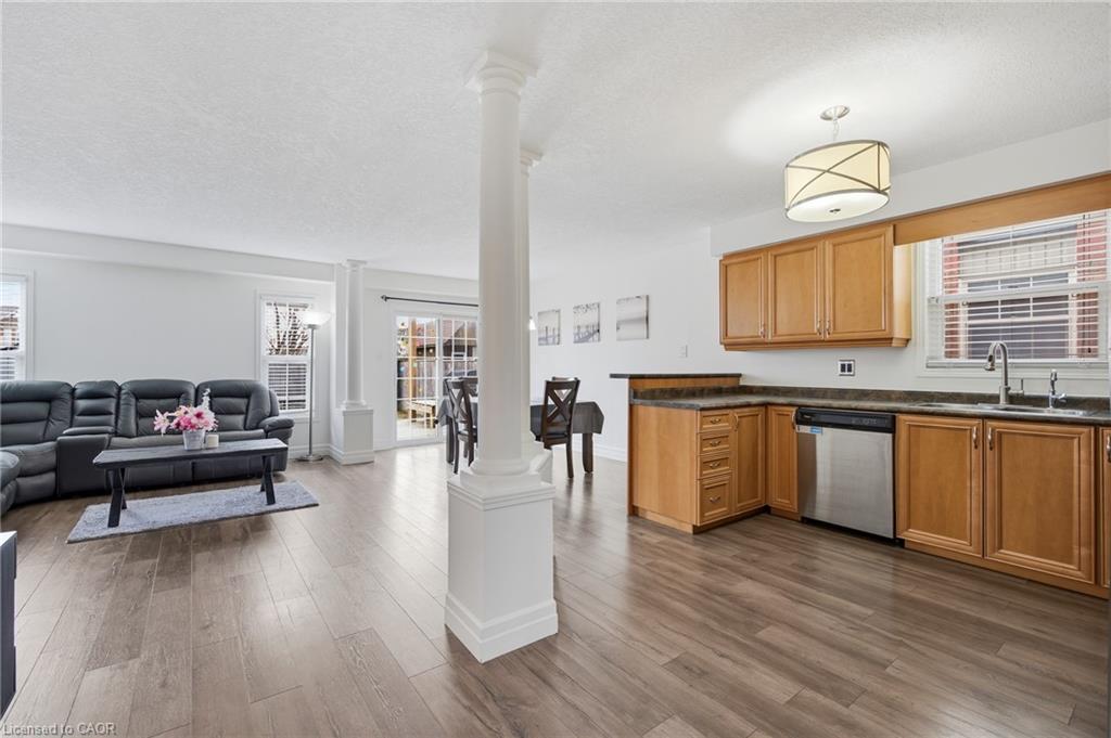 Welcome to 256 Sienna Crescent. This 3 bedroom 4 bathroom home is just what you have been waiting for! Desirable Huron Park location. Step through your covered porch and immediately you are greeted with a bright, open freshly painted (2026) two storey entryway. Main floor features high quality laminate flooring throughout with beautiful white pillars. The Maple kitchen has a desirable breakfast bar. Sliders lead to your large deck, gas bbq and fully fenced backyard with a shed. Southern exposure mean you will get plenty of natural sunlight throughout the home. The main floor is complete with a handy 2 piece bathroom. Upstairs you will find a 4 piece bath, 3 good sized bedrooms including a primary ensuite and a walk in closet! The lower level includes a spacious L-shaped recroom with plenty of room for games, entertaining and hanging out with the family. The basement also has a gorgeous 3 piece bath with a glass shower. Some updates include: Freshly painted throughout (2026), Water Softener (2025) Furnace/AC (2023) and Shed (2019). Located close to schools, trails, groceries, shopping, Schlegel Park and more.